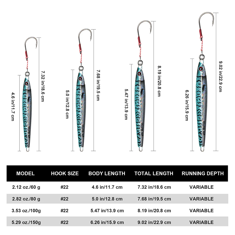 Goture Fihsing Lure Fast Jig 60g 80g 100g 150g 12/13/14/16cm Jigbait Sewishing Jig Metal Luminoso Isca Artificial