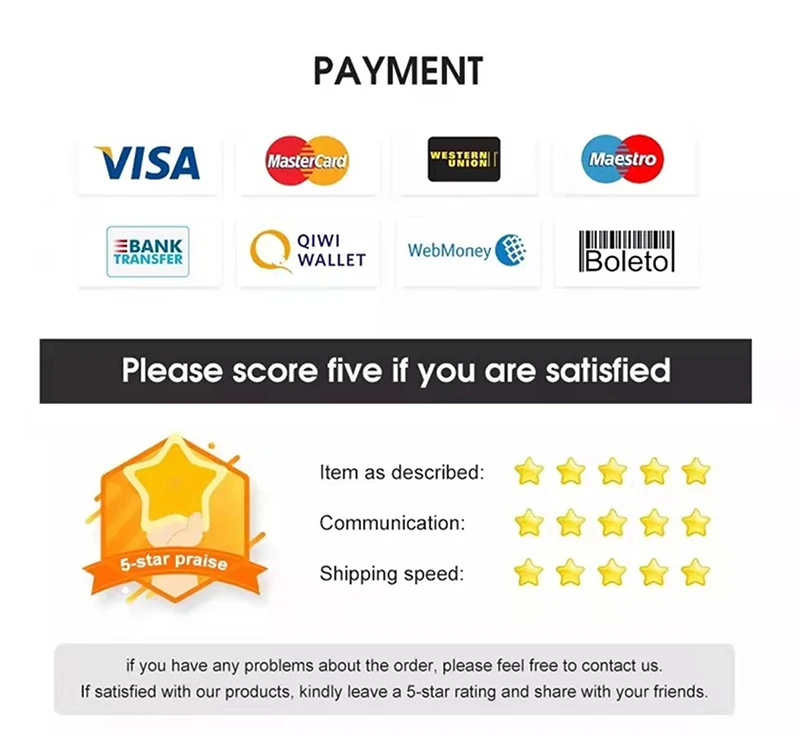 Entre em contato conosco primeiro se você não estiver satisfeito com o item quando recebido, ofereceremos uma solução satisfatória antes de deixar qualquer comentário ou disputa, obrigado pela sua compreensão!