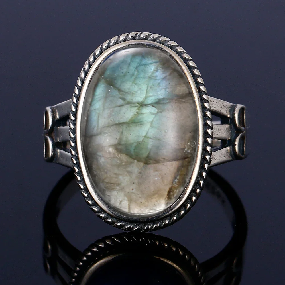 Anel de prata esterlina 925 para mulheres labradorita natural