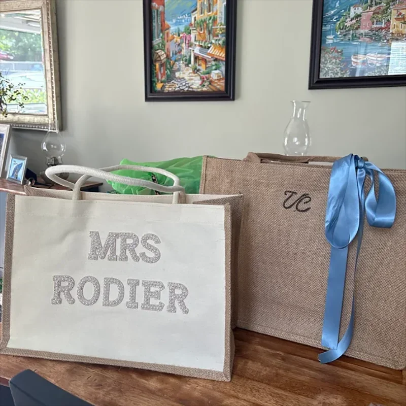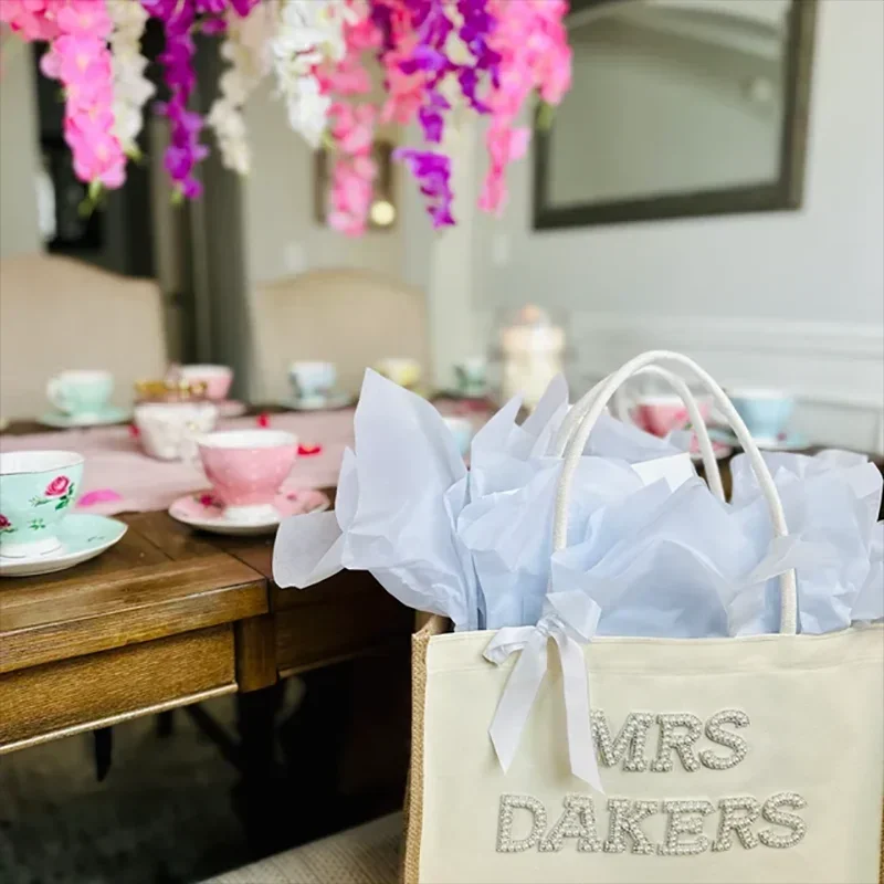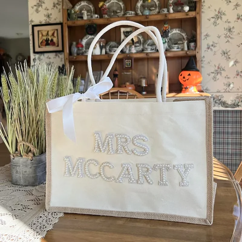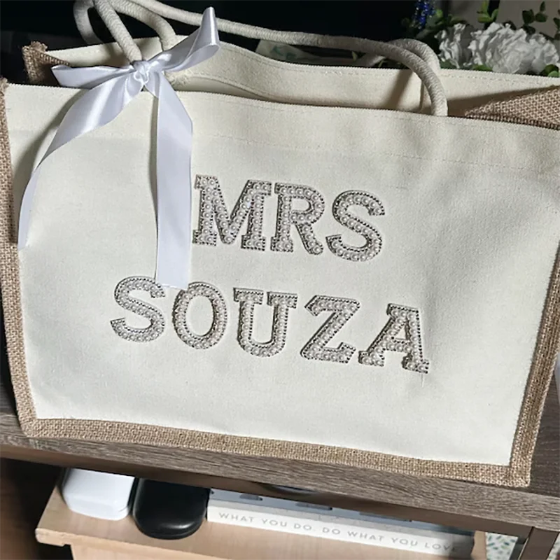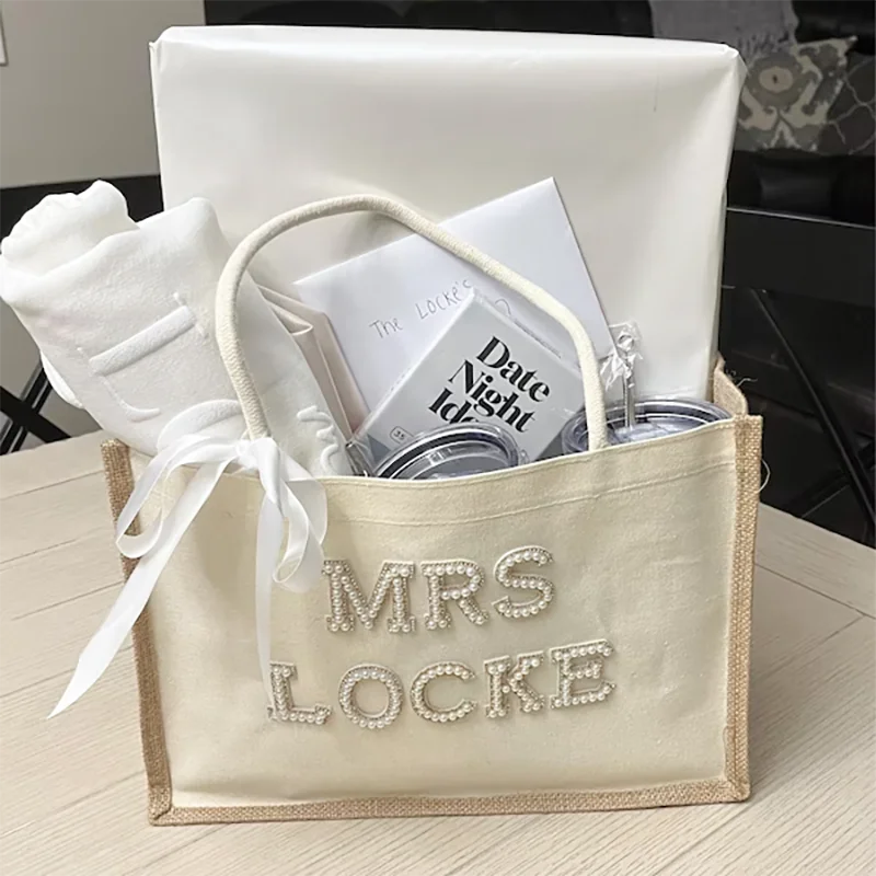 Grande personalizado sra branco pérolas sacola com arco chá de panela despedida de solteira presentes de lua de mel suprimentos noiva para ser acessórios