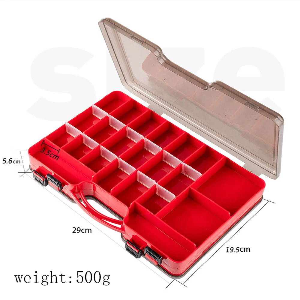 Grandes caixas de equipamento de pesca dupla camada recipiente de isca portátil isca armazenamento defletor multi compartimentos caso mala caixa de ferramentas