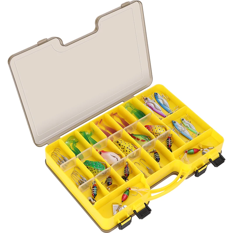 Grandes caixas de equipamento de pesca recipiente de isca de camada dupla defletor removível vários compartimentos portátil caso de armazenamento de isca mala caixa de ferramentas