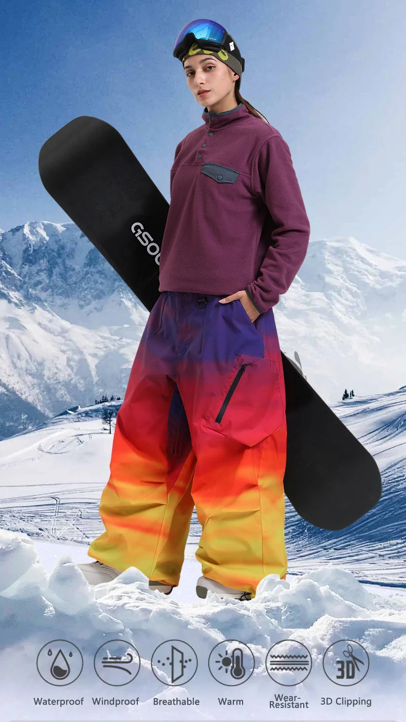 - > Gsou neve calças de snowboard masculinas e femininas à prova dwindproof água à prova de vento calças de esqui térmica inverno workwear solto ajuste ao ar livre roupas esportivas