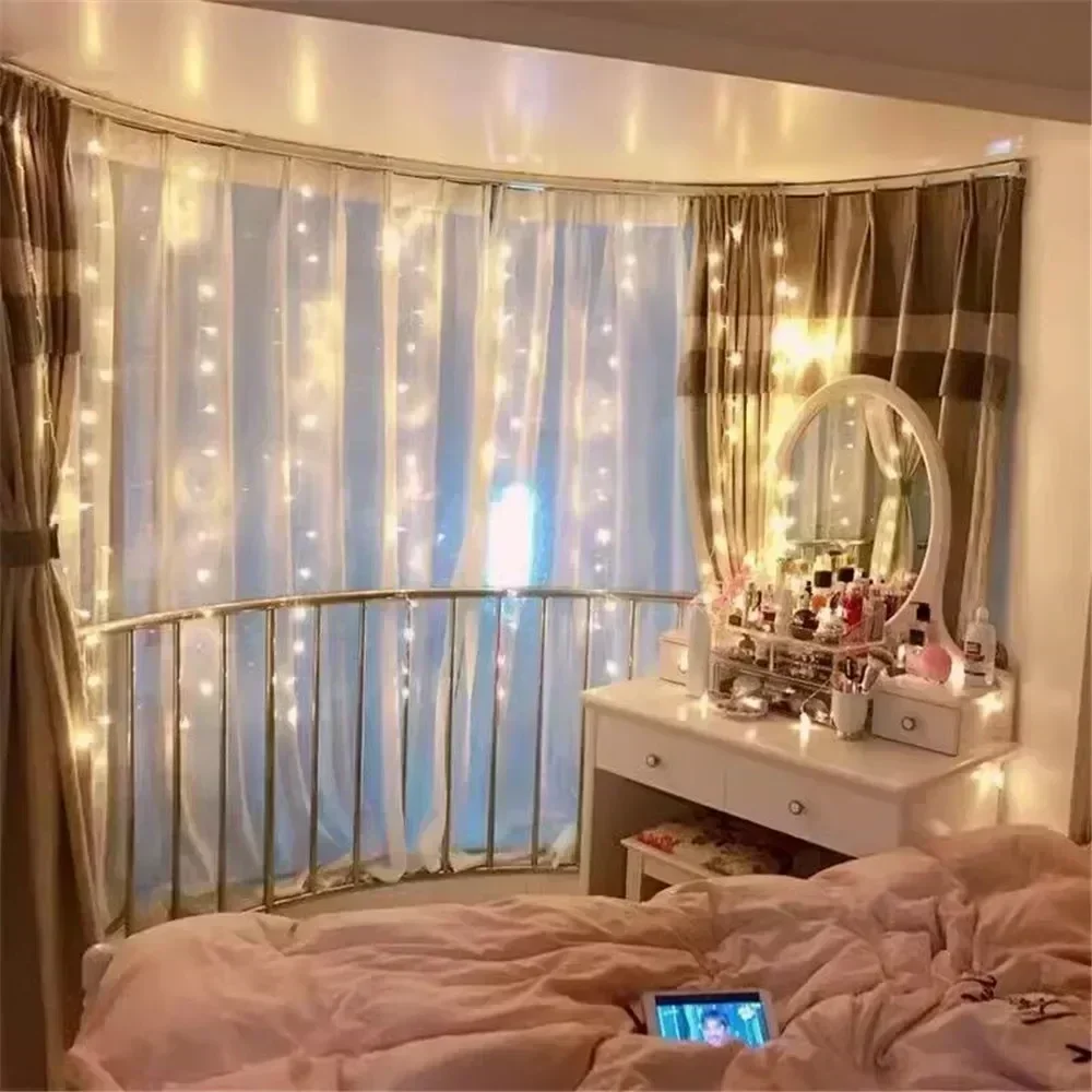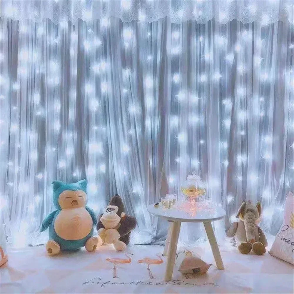 - > Guirlanda de casamento luzes de fadas ao ar livre 8 modo led usb cortina luz corda árvore natal decoração do feriado luz do jardim