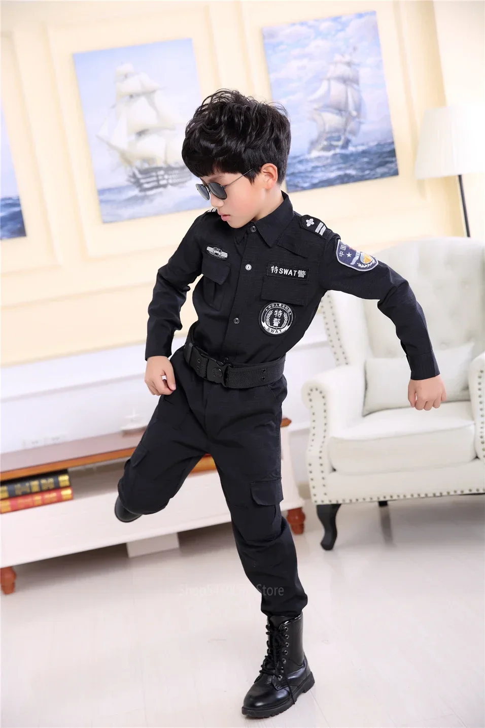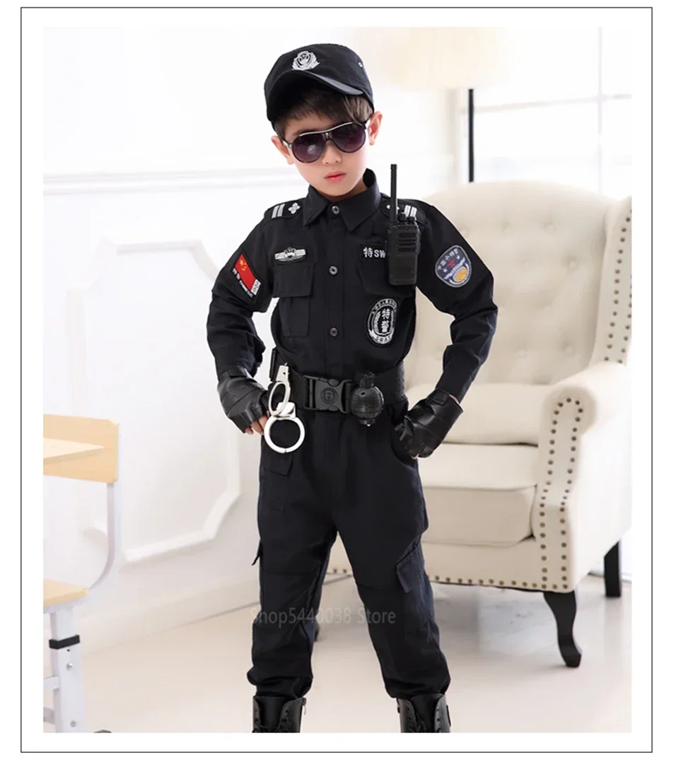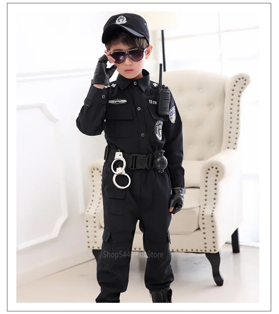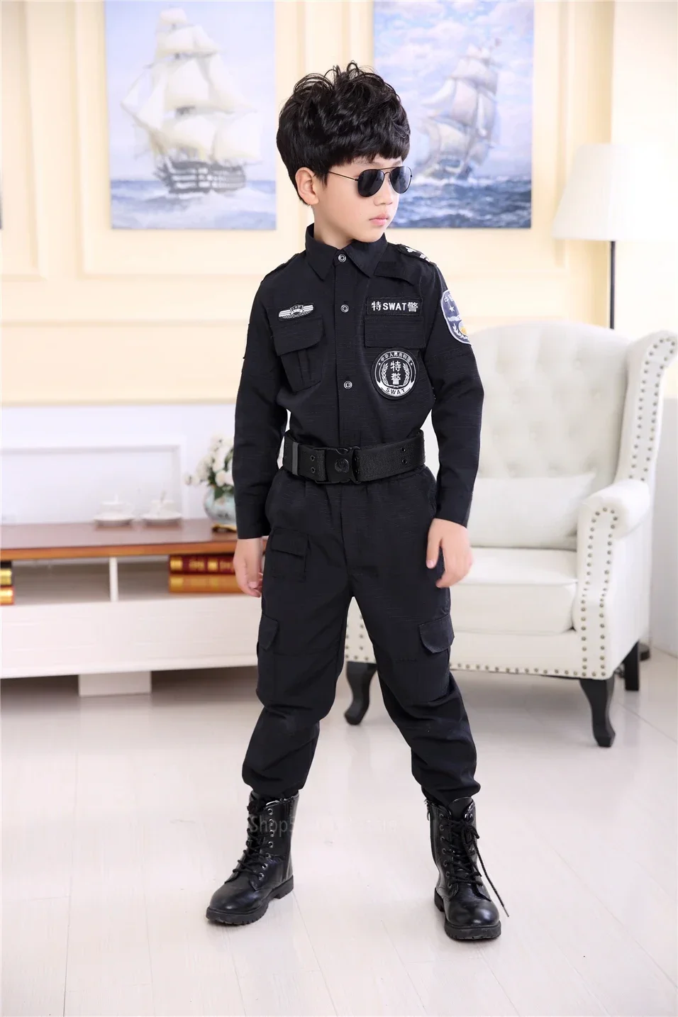 Halloween policial cosplay fantasias para crianças, uniforme de carnaval infantil, soldado do exército para meninos, 110-160cm