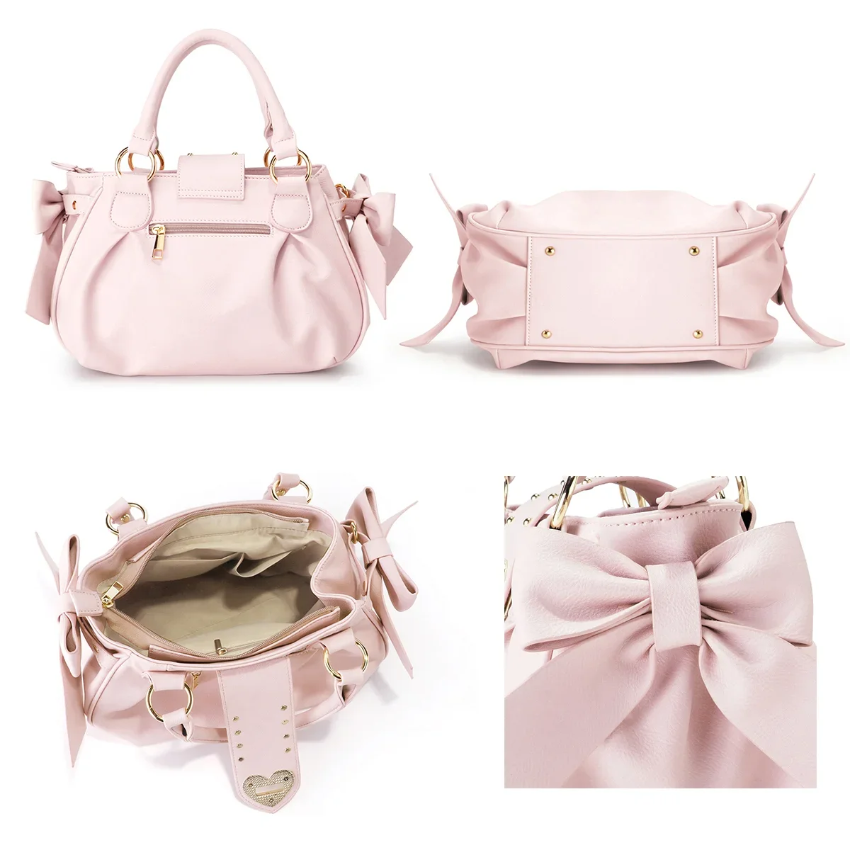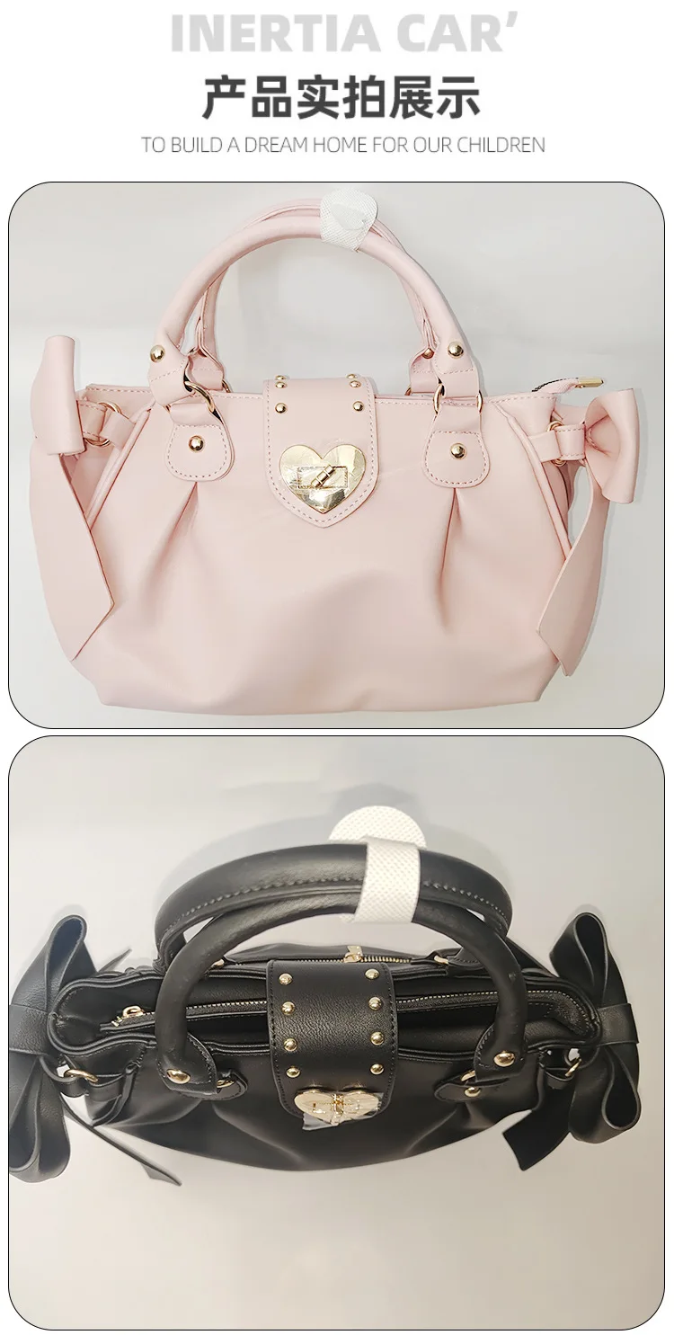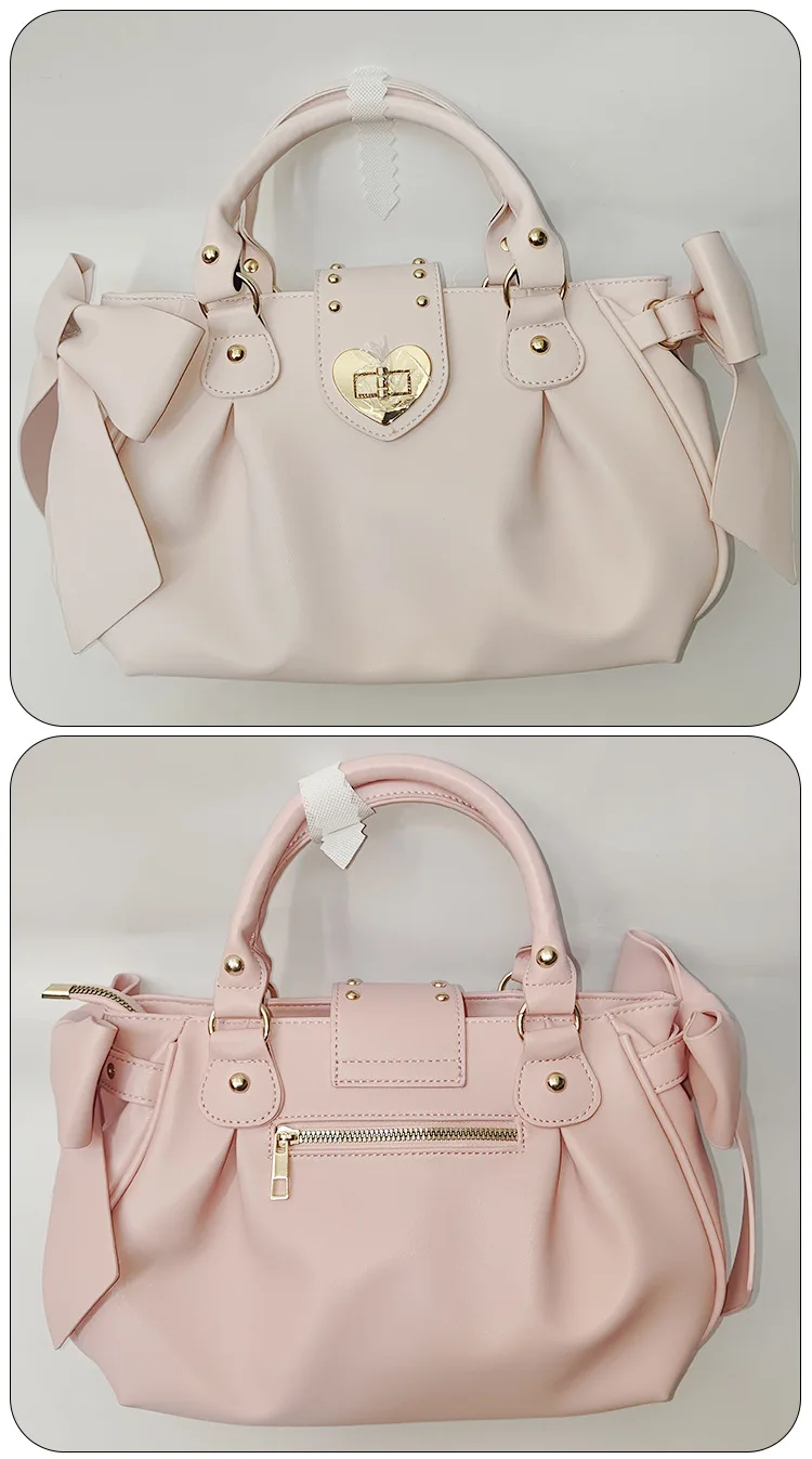 - > Harajuku arco rosa bolsa de mão feminina estilo japonês macio casual crossbody saco senhoras doce bonito grande capacidade sacos ombro