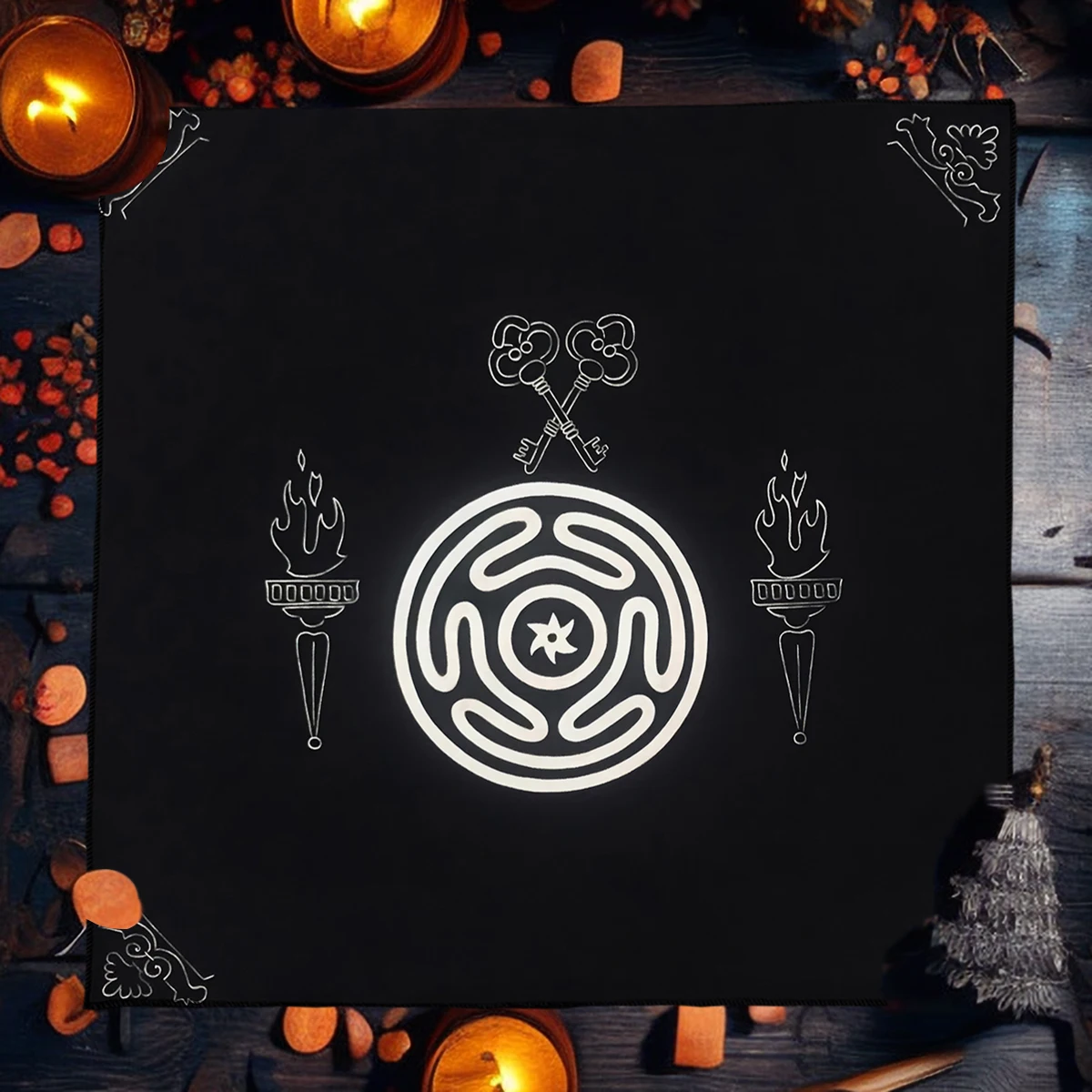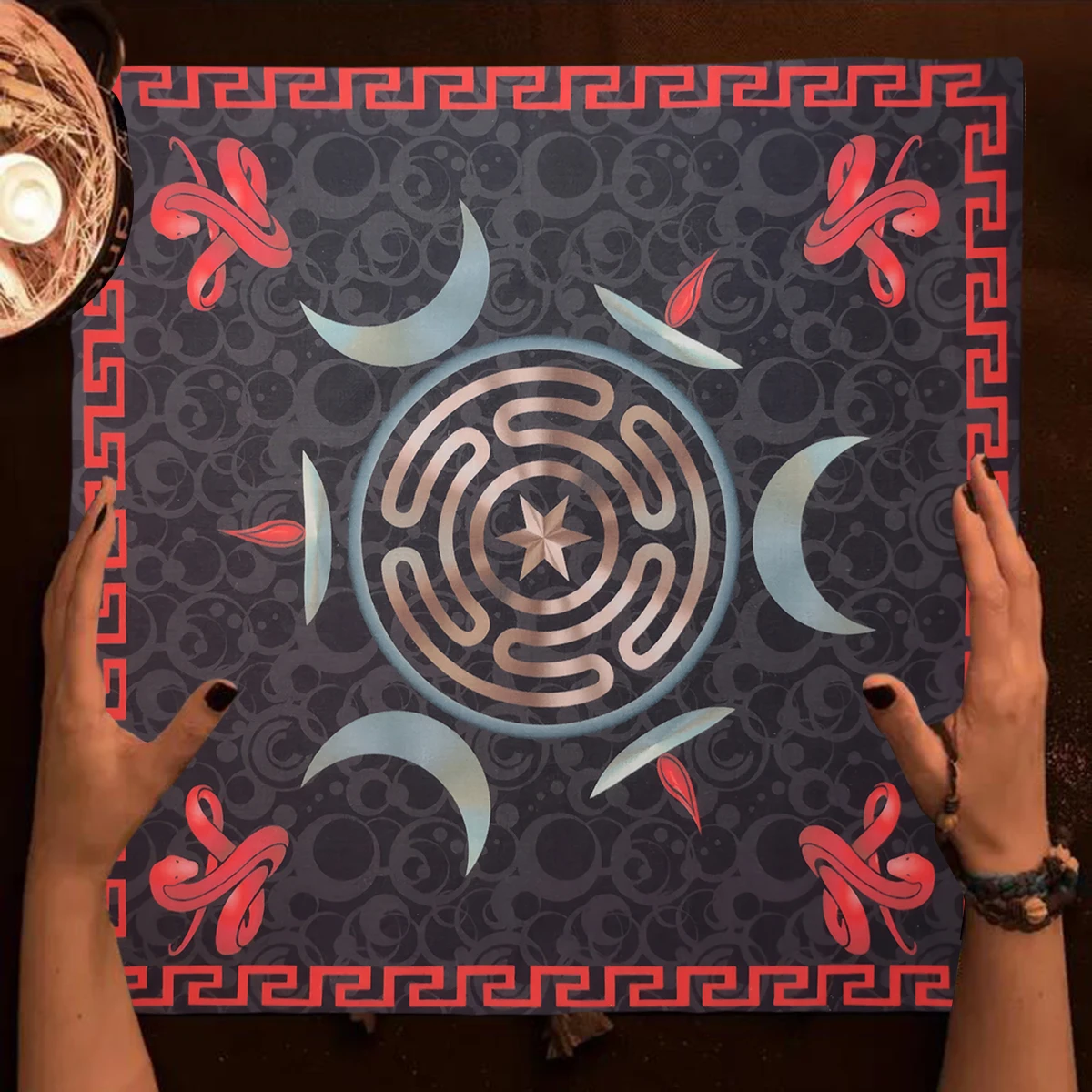 Esta toalha de mesa de tarô pode ser usada durante todo o ano. Tecnologia de impressão de alta definição, sem desbotamento.Cores brilhantes, linhas brilhantes, borda. Tecido de poliéster de alta qualidade, agradável à pele, macio, leve, durável, sem cheiro.