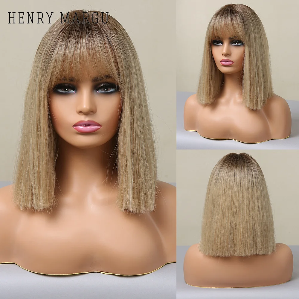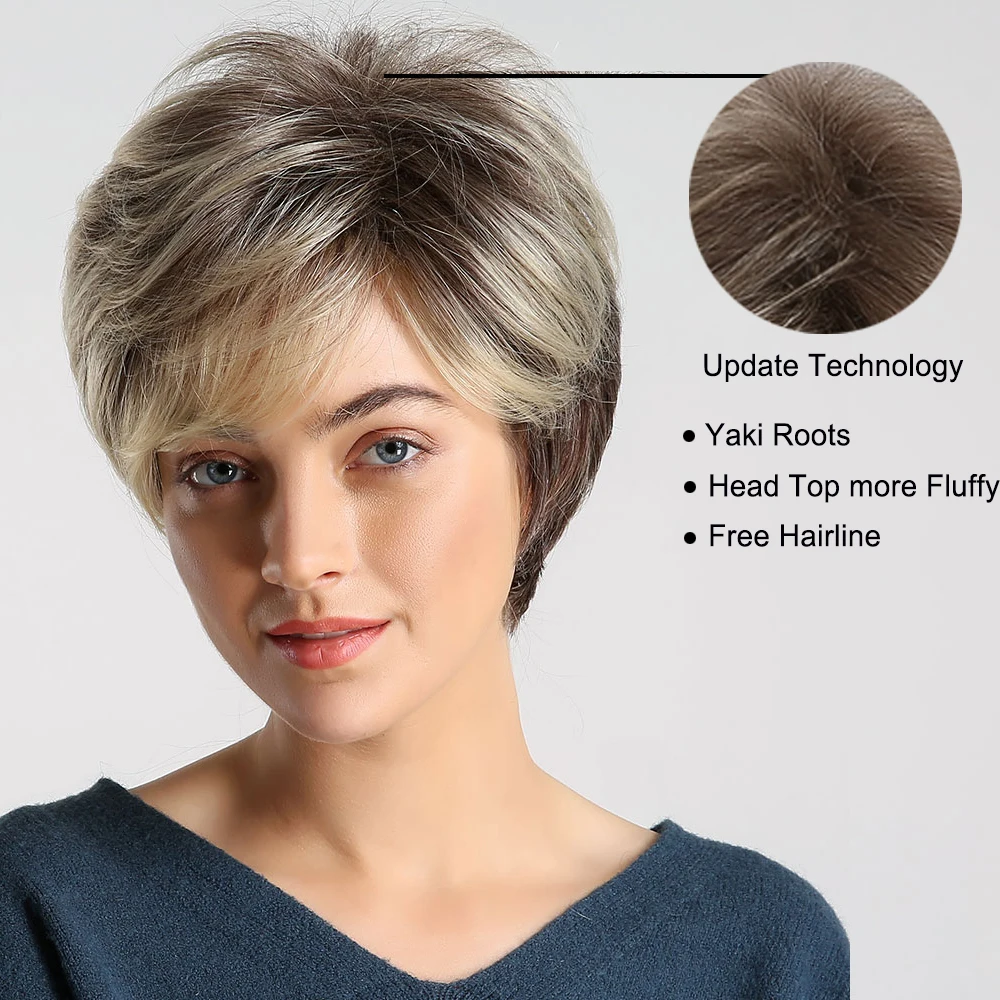 Feature 2: Dark Root Ombre Brown Blonde Short Hair Wigs