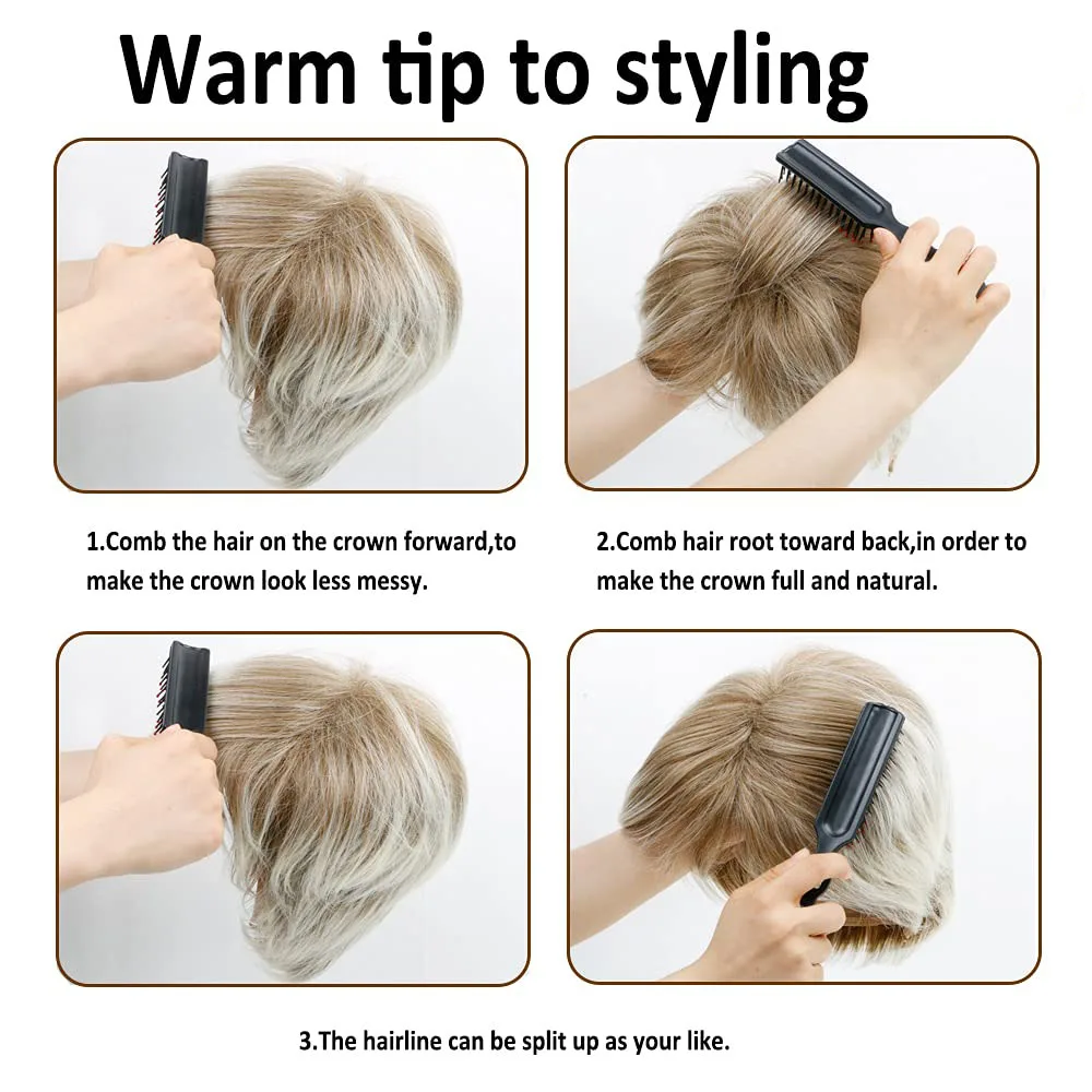 Tips: Be sure to use a wide comb to comb the hair roots 5-6 times to make the top of the hair fluffy.
