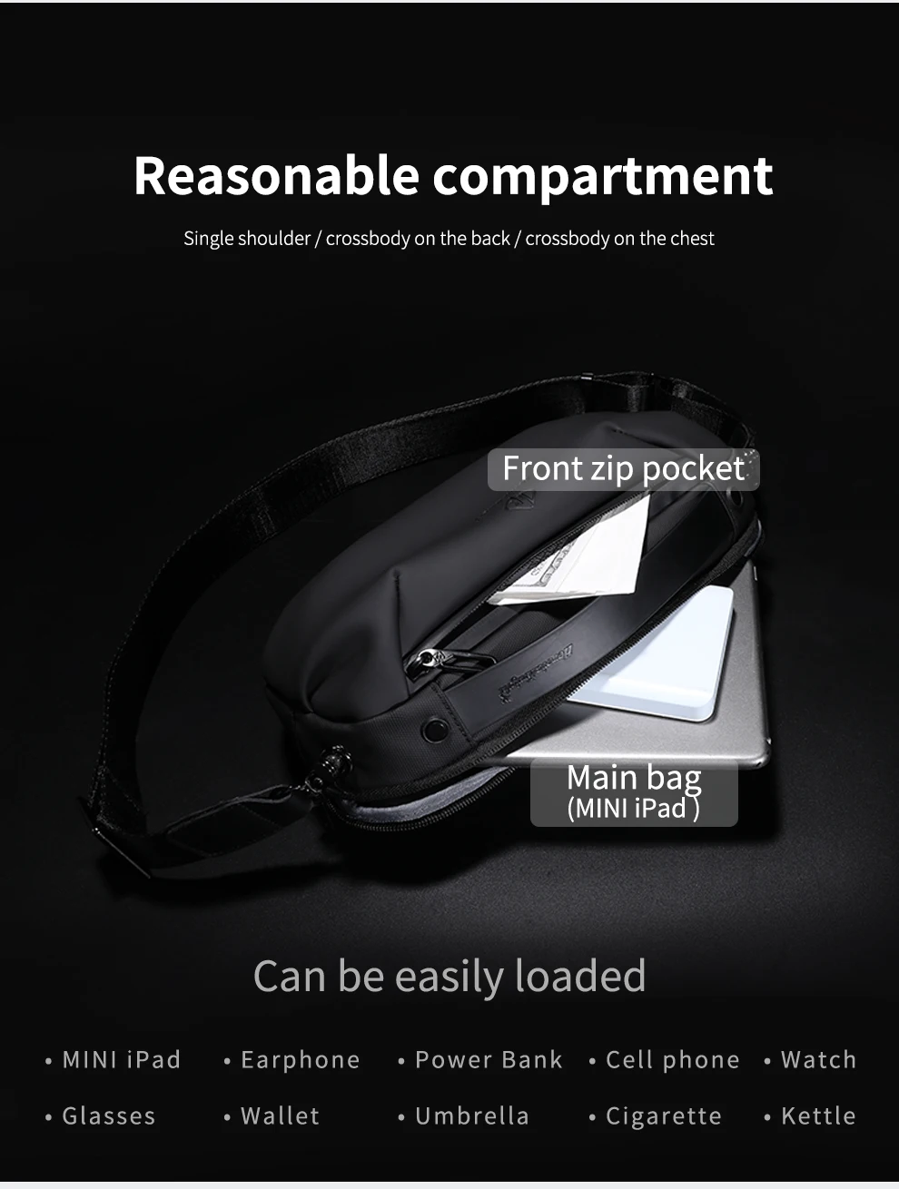 Esta bolsa masculina leve foi projetada para seus itens essenciais do dia a dia.Sua alça de ombro removível e ajustável oferece opções versáteis de transporte, permitindo que você a use como bolsa de mão, bolsa de ombro ou bolsa crossbody com facilidade.O bolso traseiro anti-roubo mantém seus objetos de valor seguros.