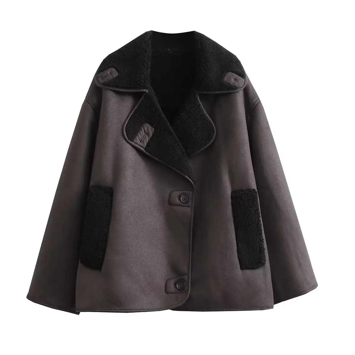 HH Jaquetas de couro sintético para mulheres inverno quente lã manga comprida lapela casaco moda feminina vintage agasalhos grandes