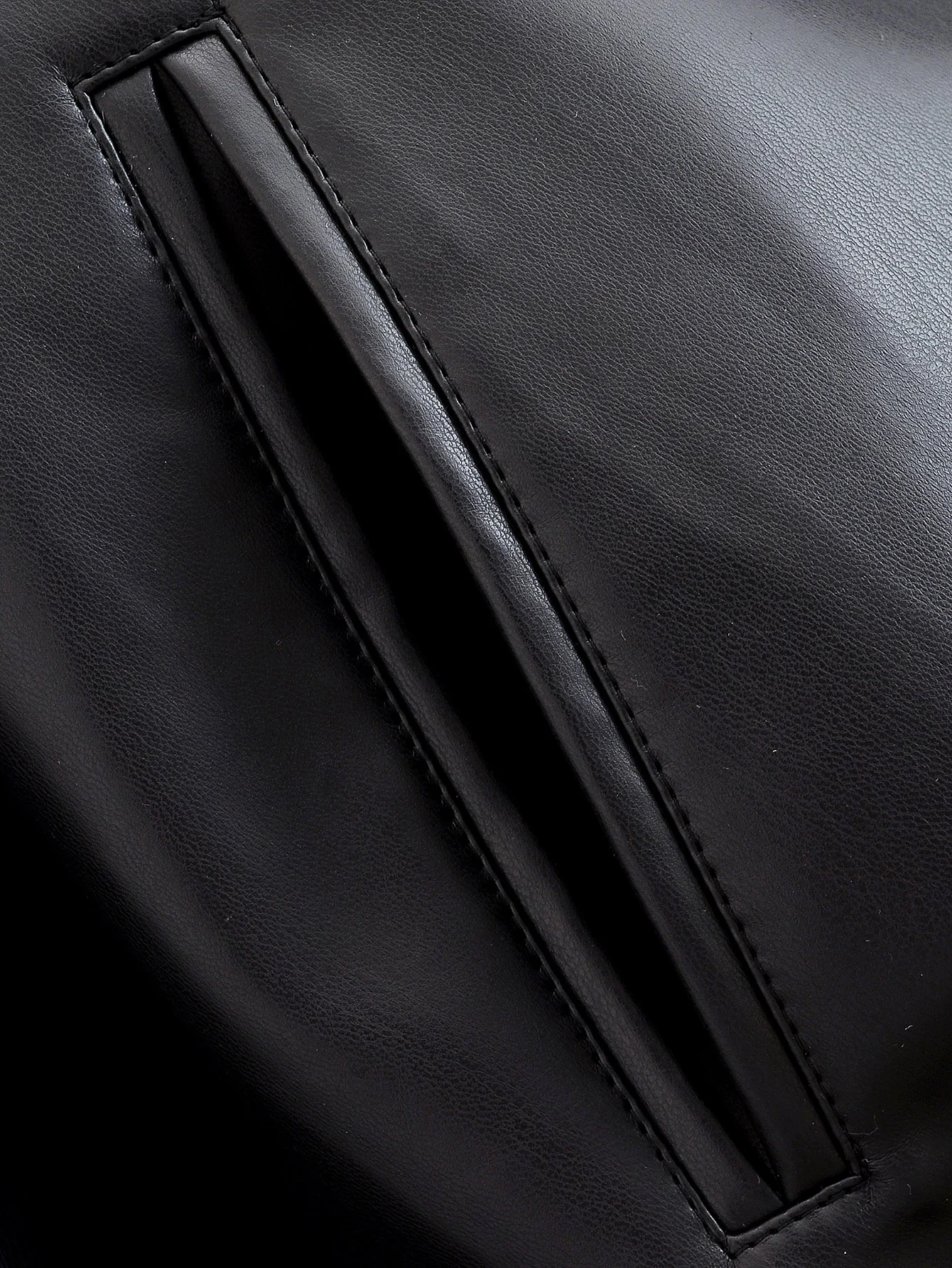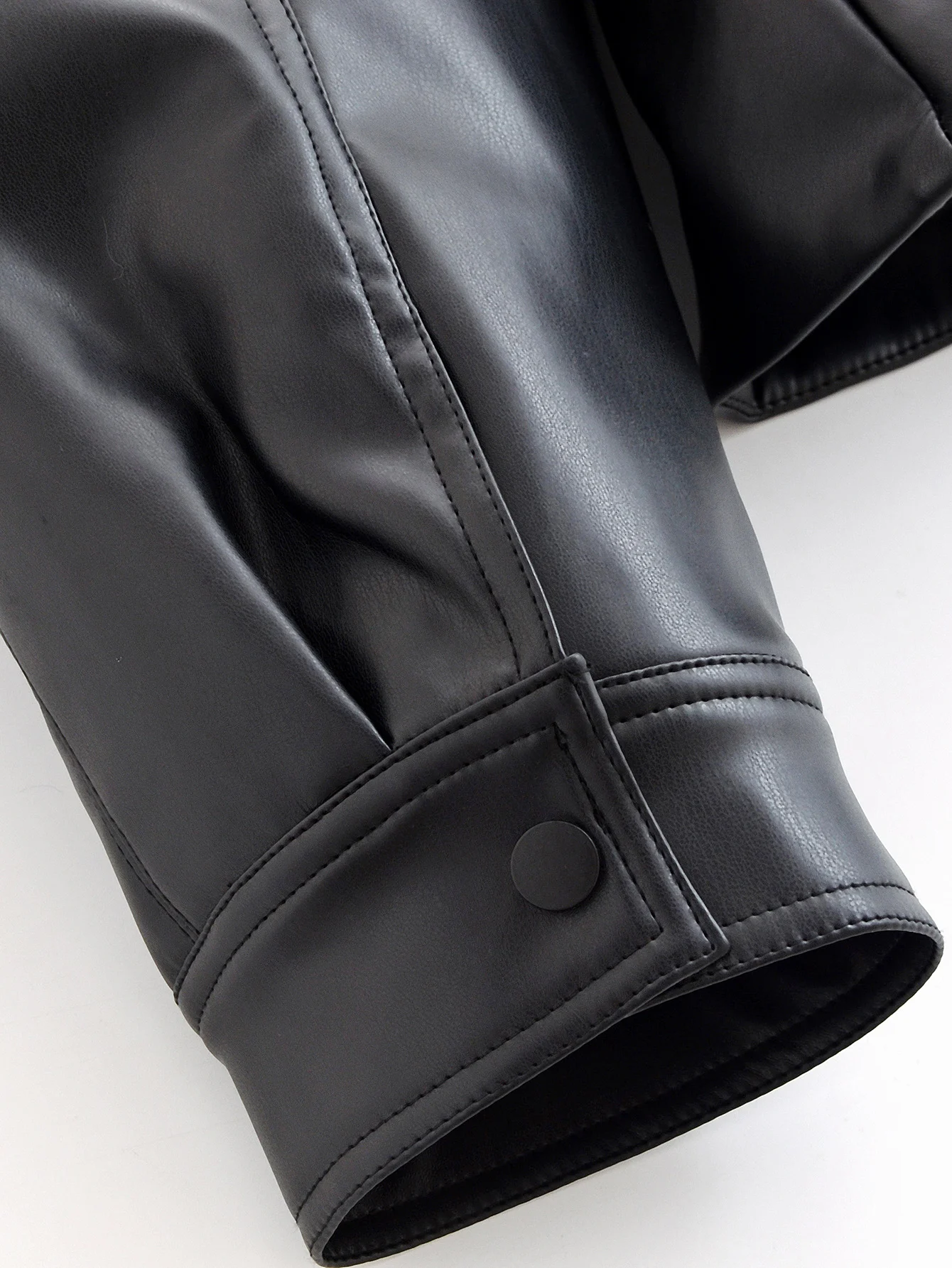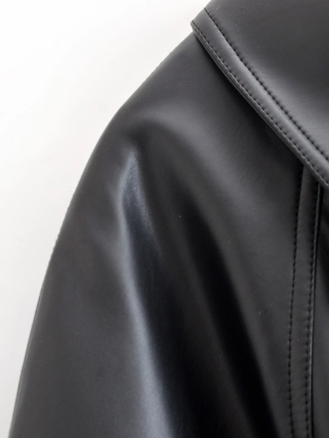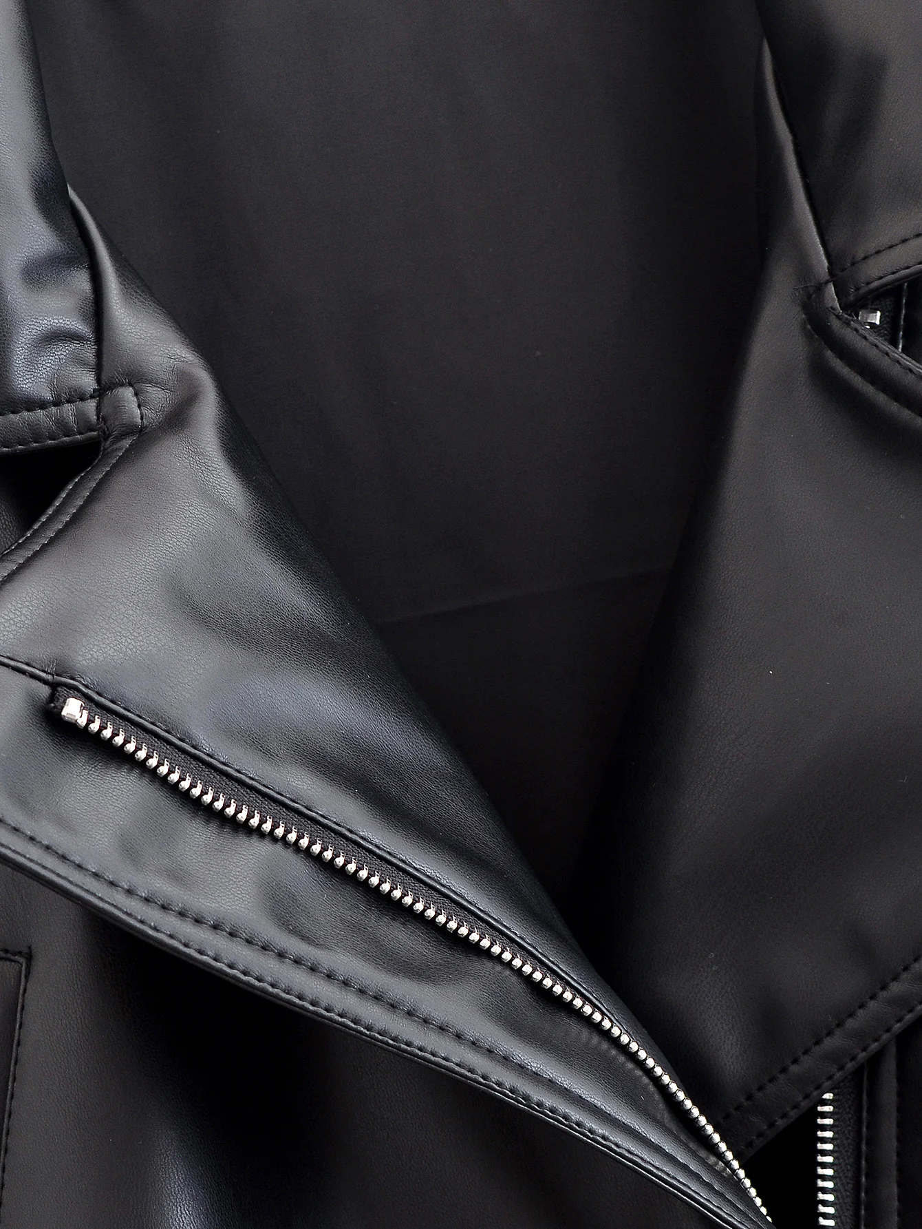 Hh moda feminina preto curto couro falso trench coat manga longa lapela jaqueta com cinto vintage senhora jaqueta de motocicleta outwear