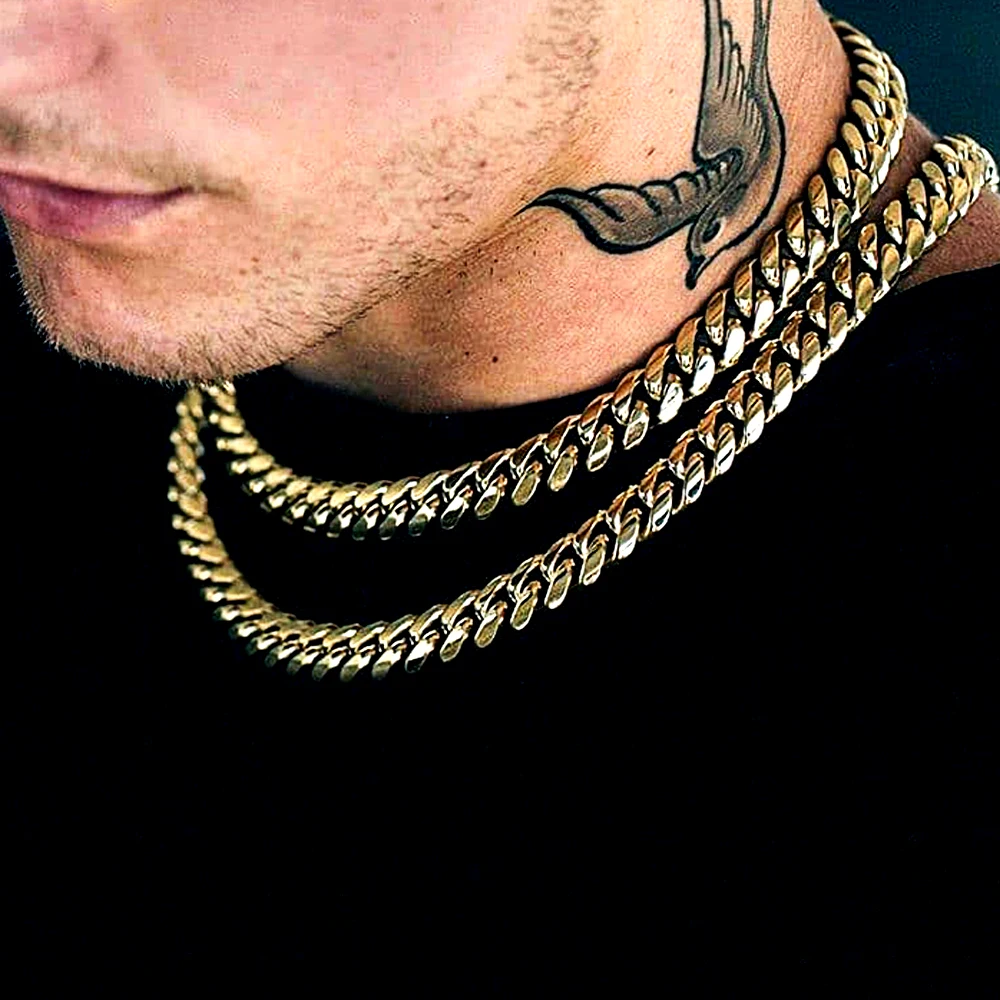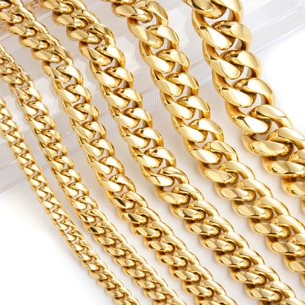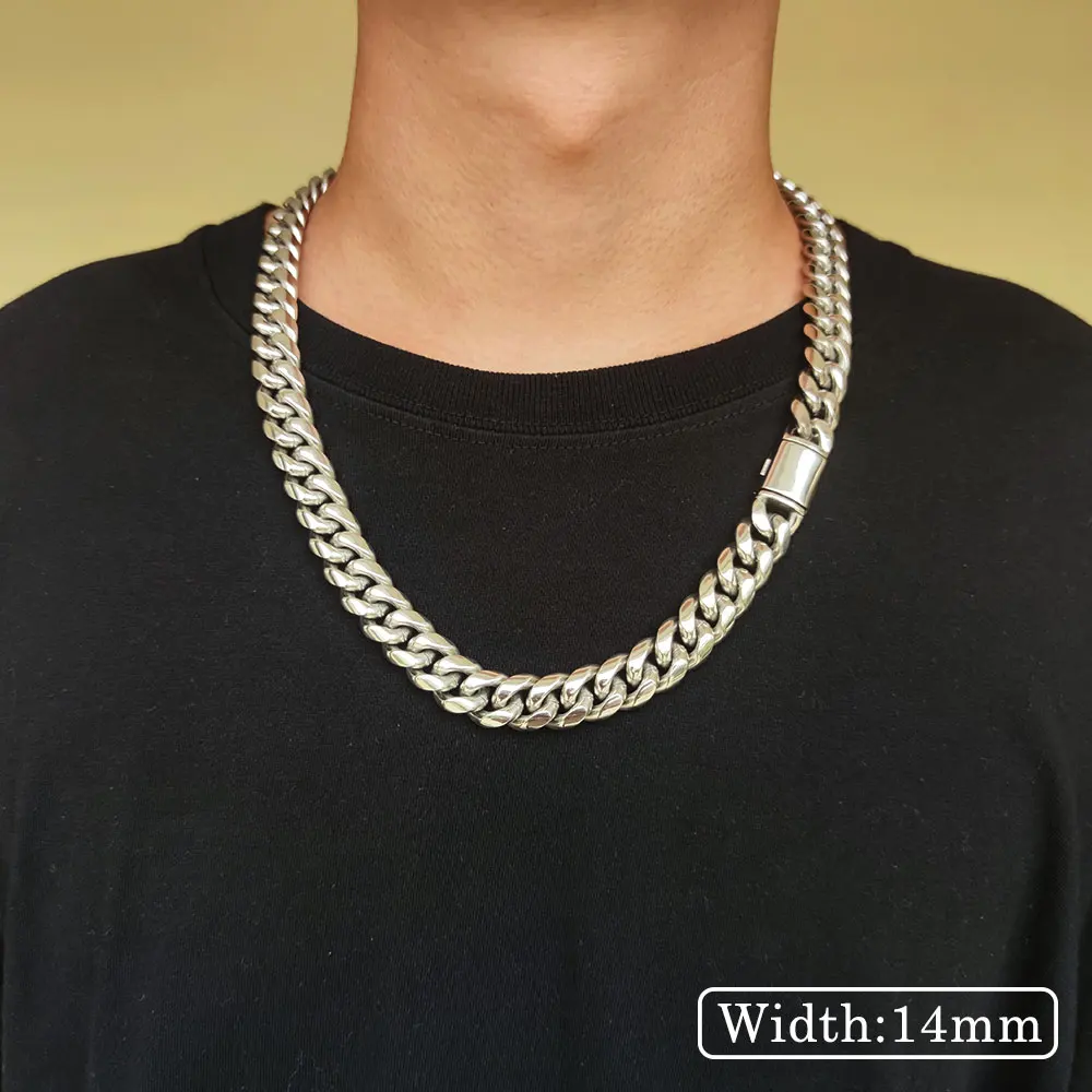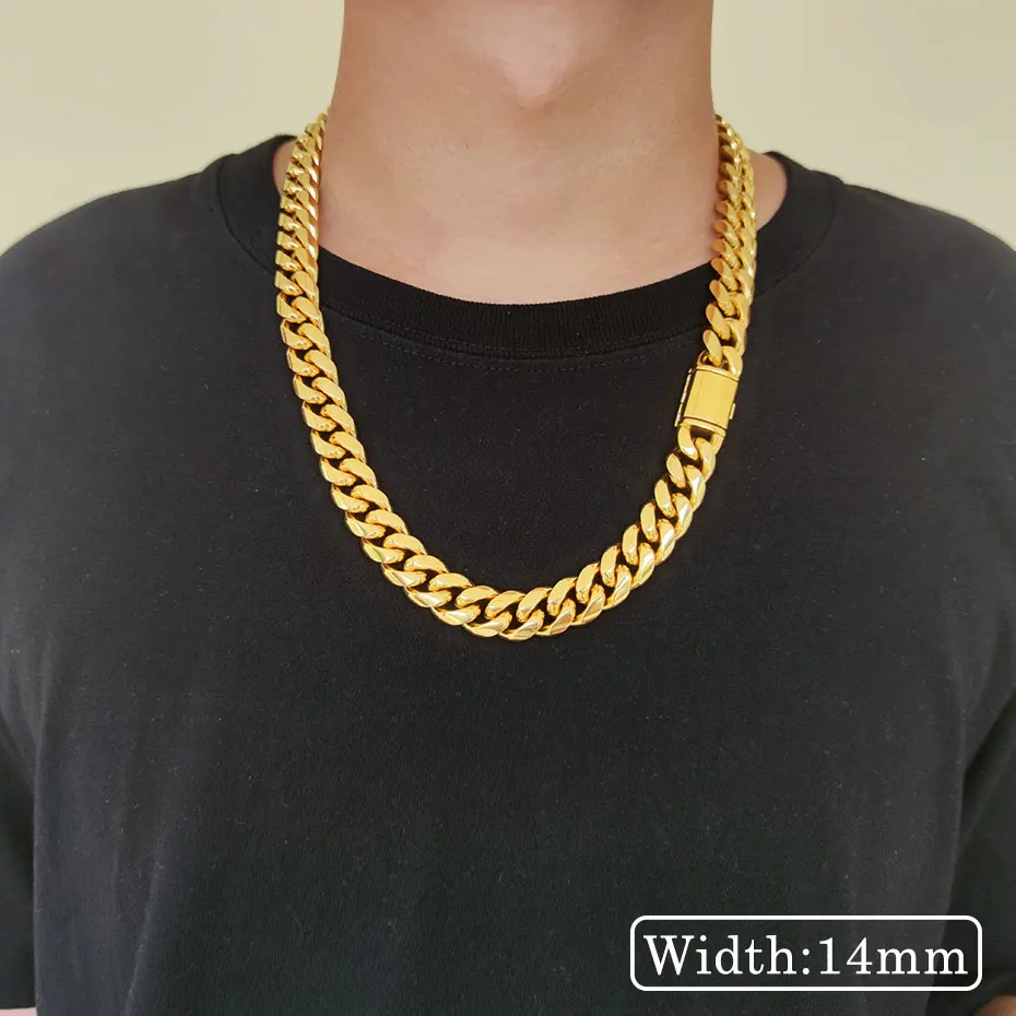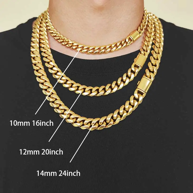 - > Hip hop jóias 8mm/10mm/12mm/14mm colares masculinos de aço inoxidável corrente legal cubana link corrente presente para meninos e meninas