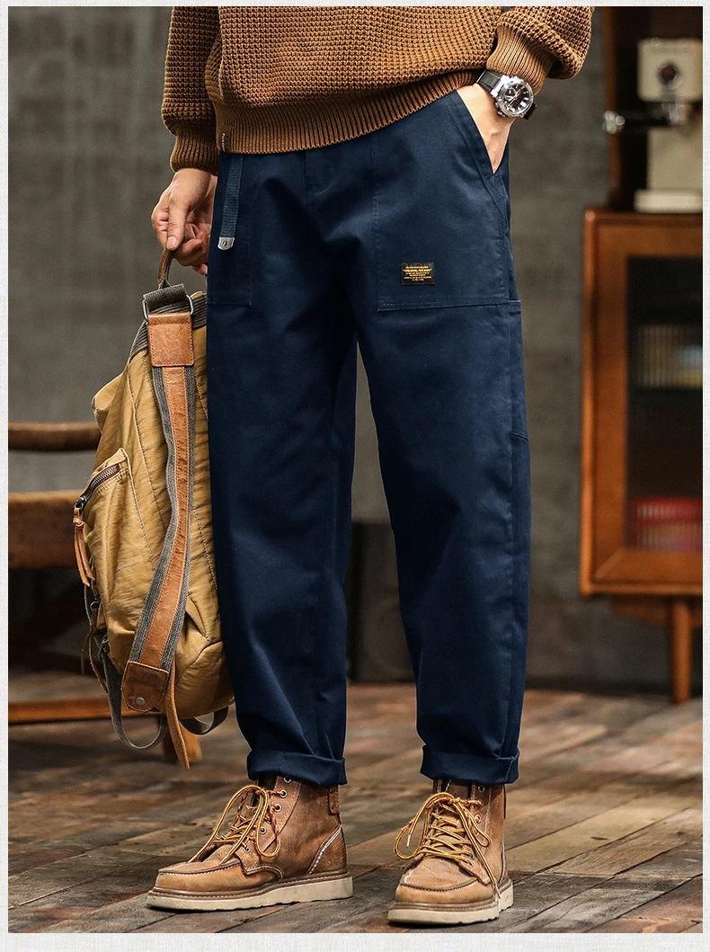 Hiqor calças masculinas de perfil solto, calças vintage americanas para homens, cintura alta, verde militar, calças casuais masculinas, calças cargo