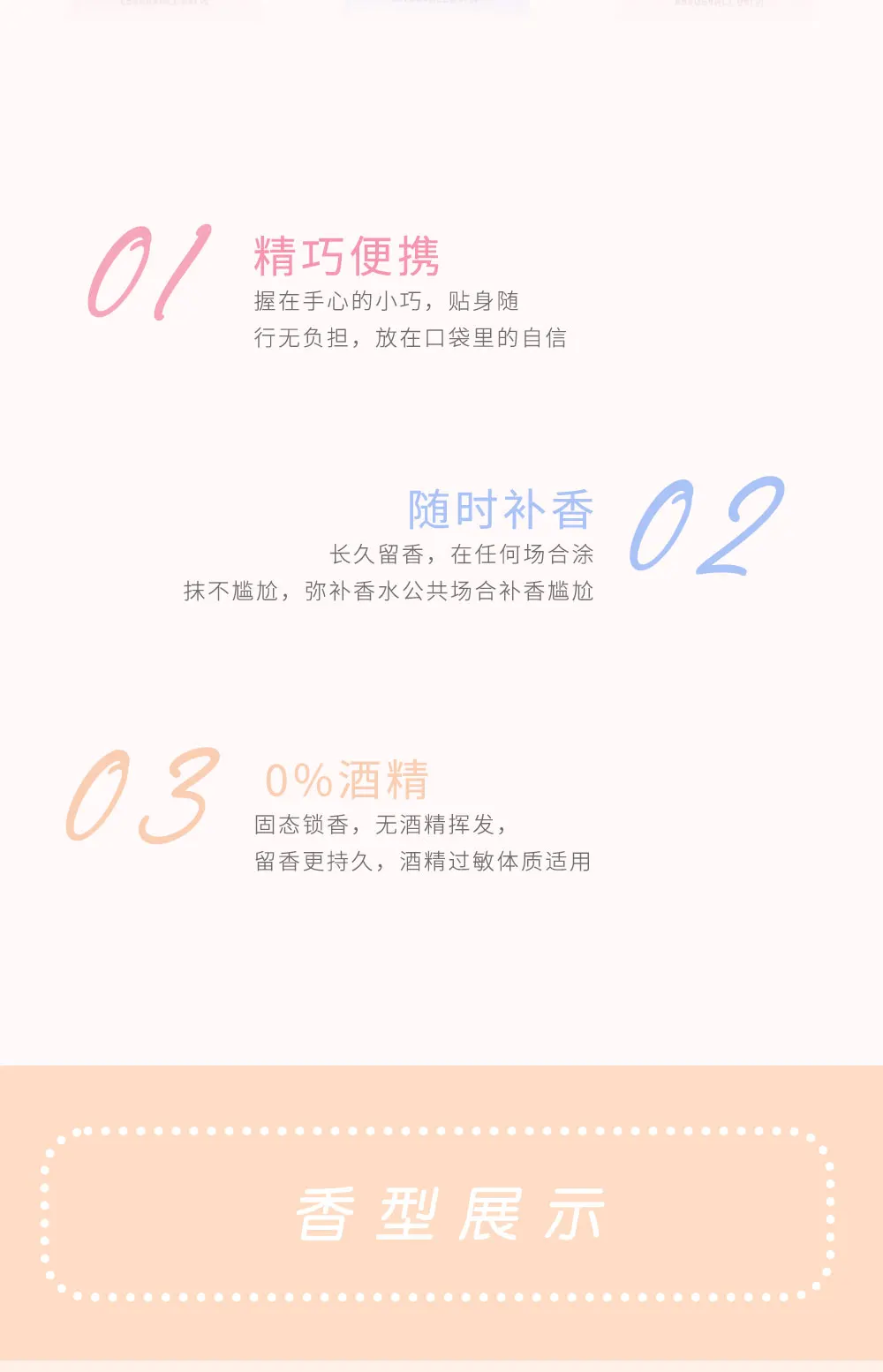 1.Fragrância de longa duração: Contendo componentes de fragrância de alta concentração, possui um aroma rico e duradouro.Aplicar uma pequena quantidade pode emitir continuamente uma fragrância encantadora na pele, deixando um aroma duradouro