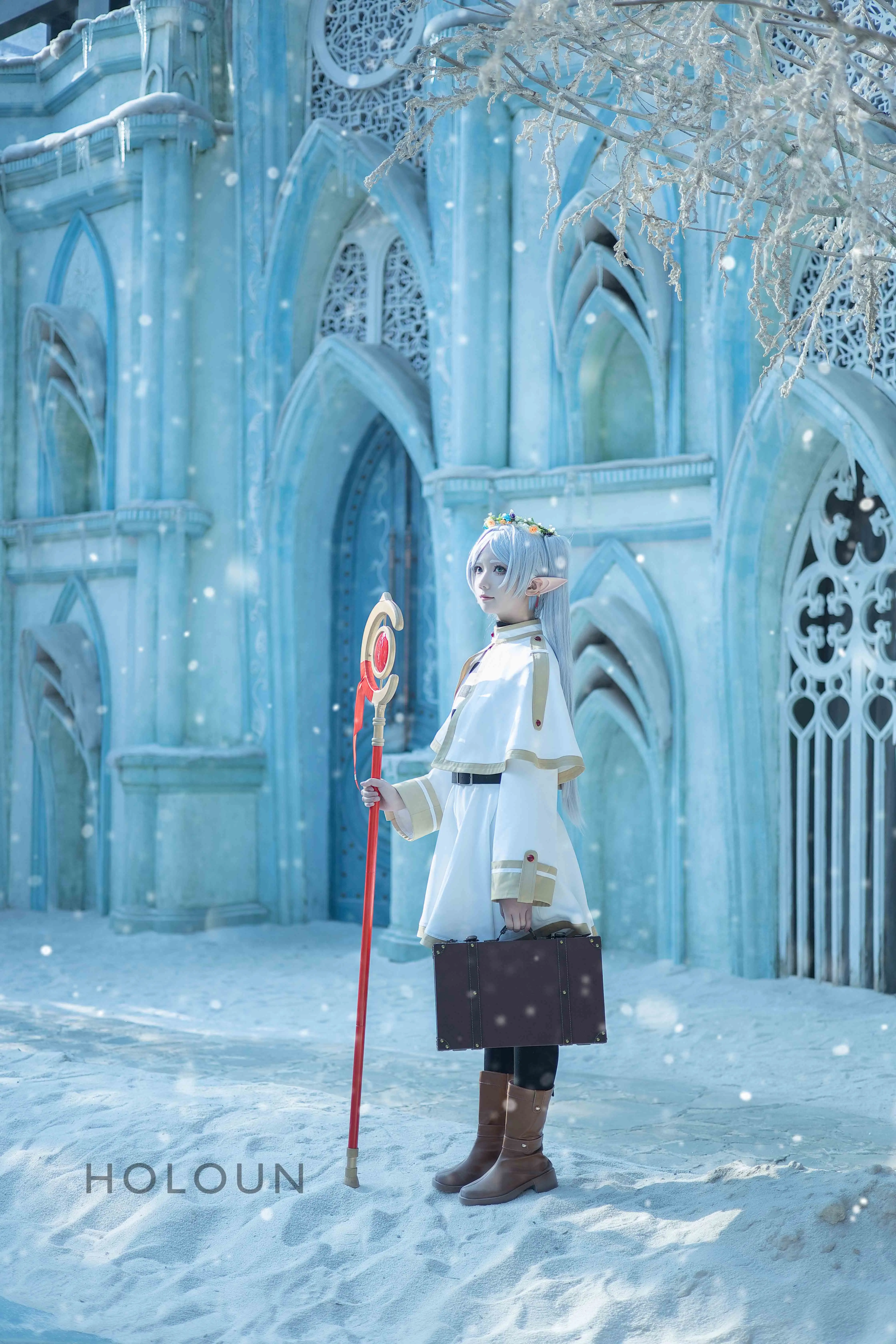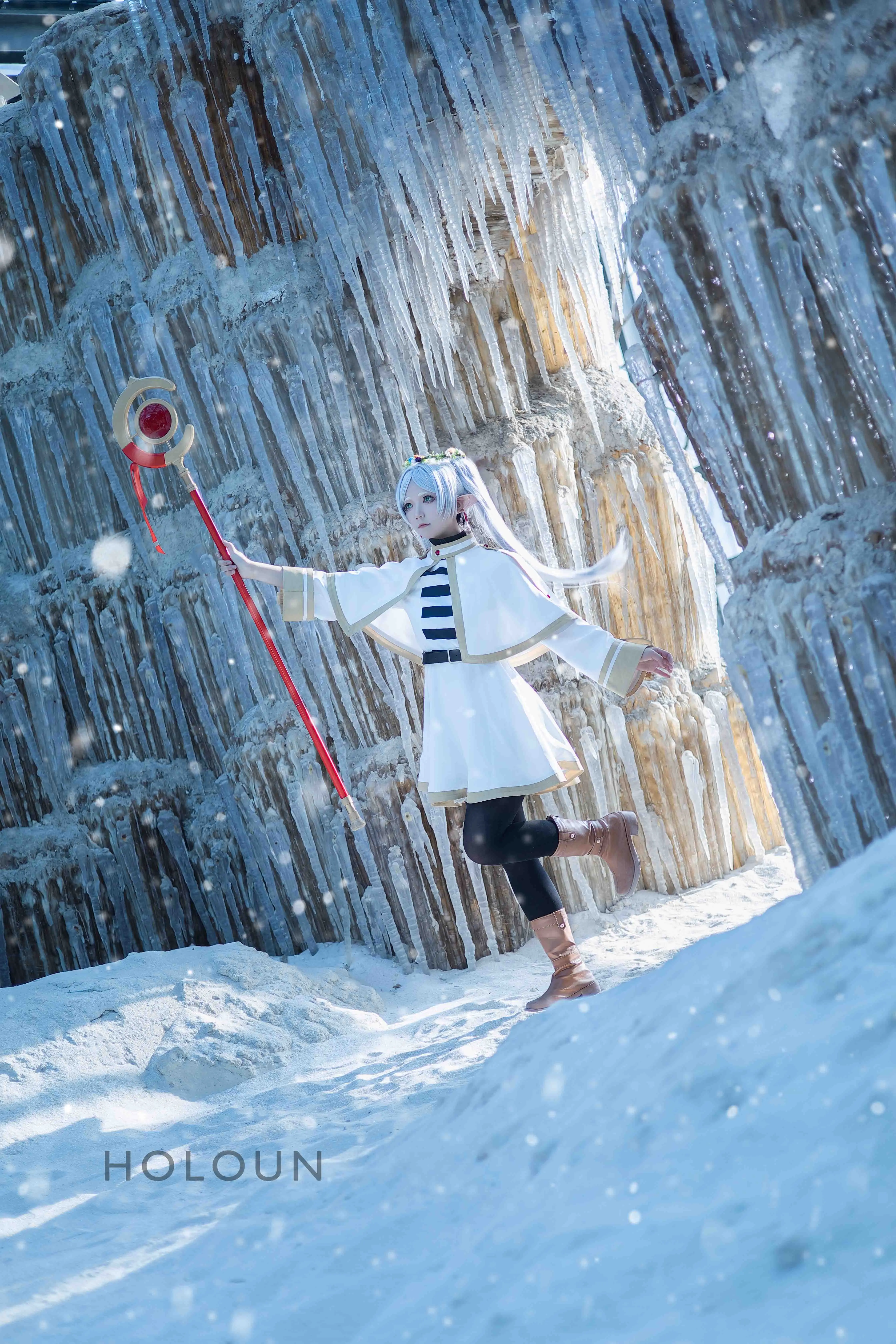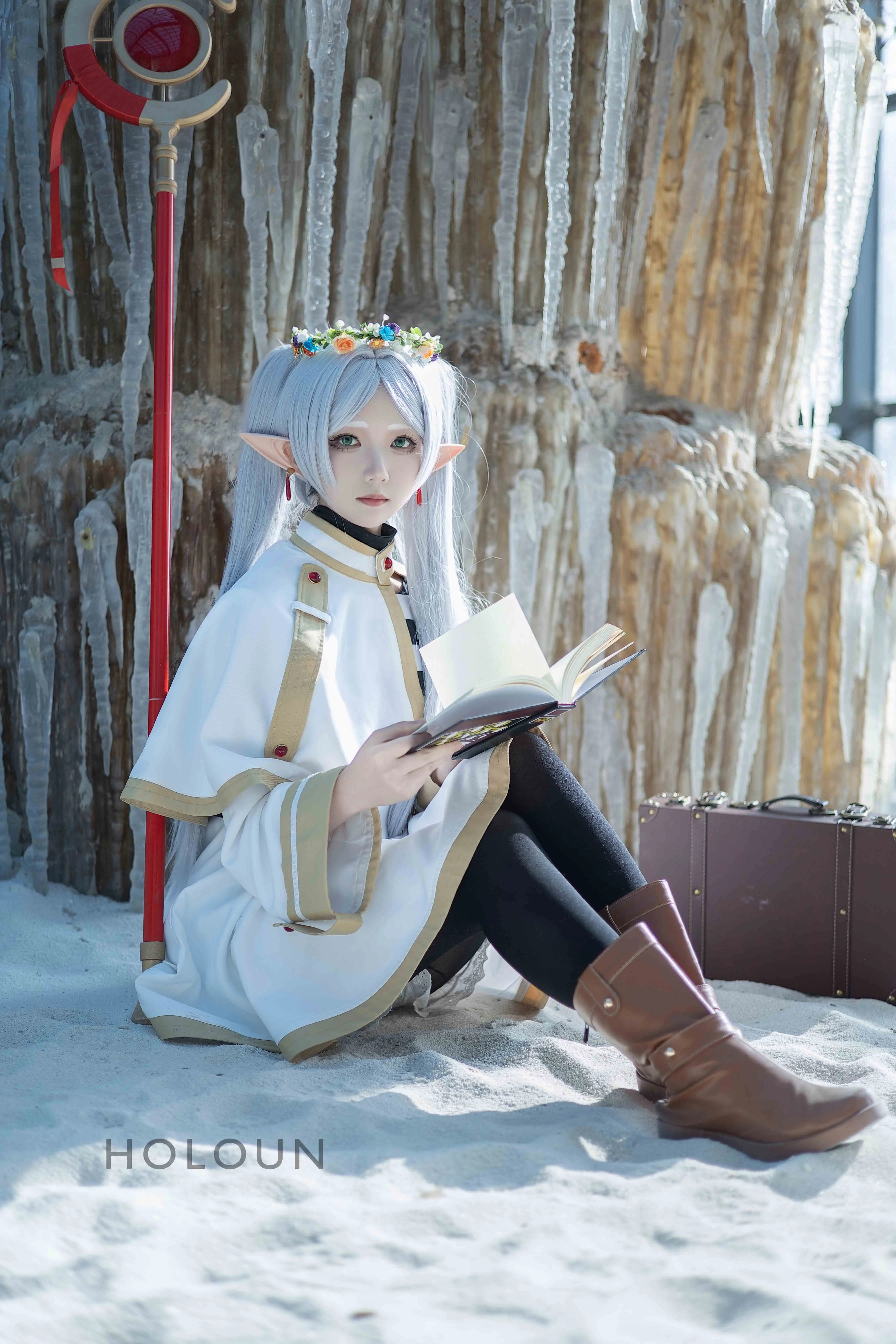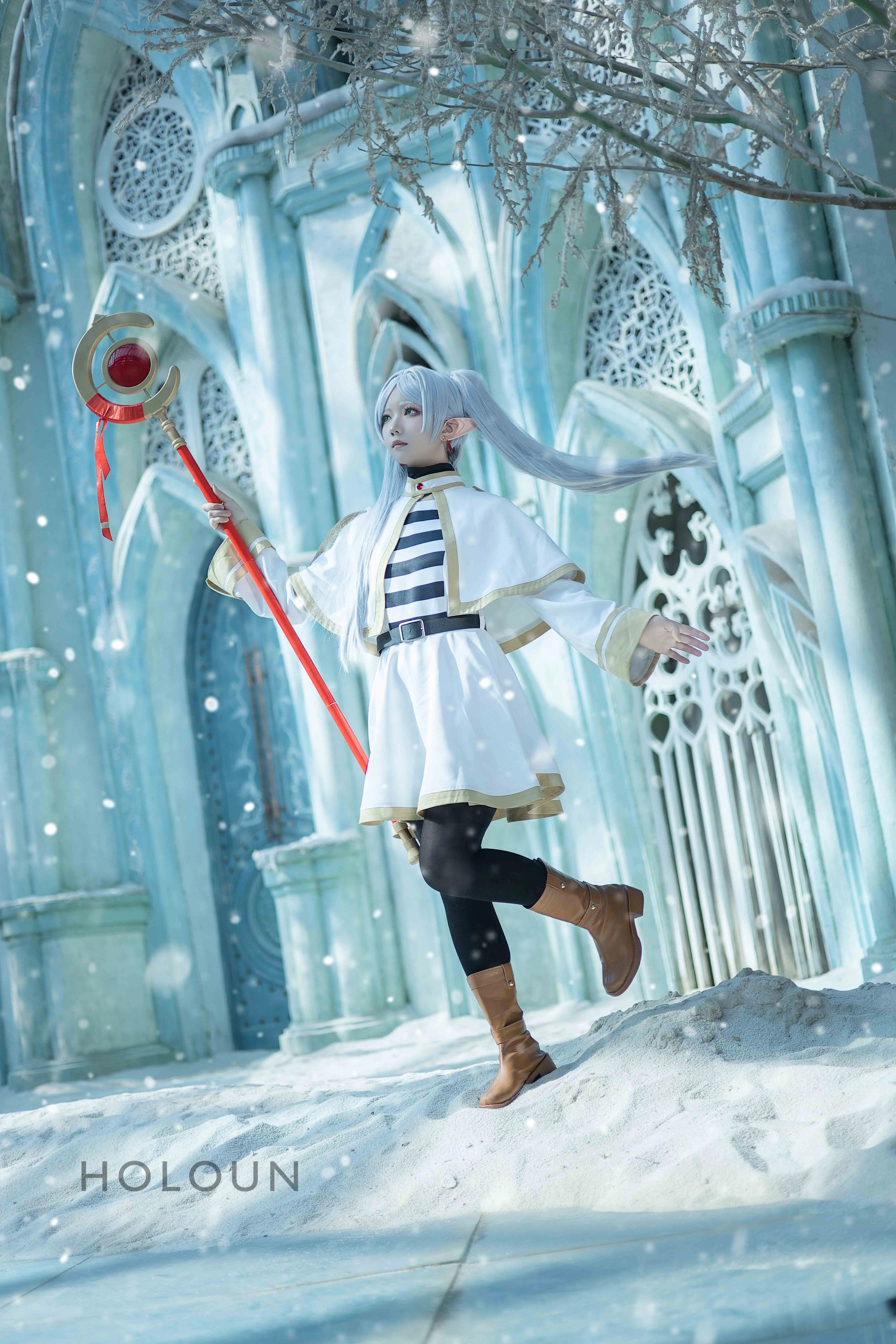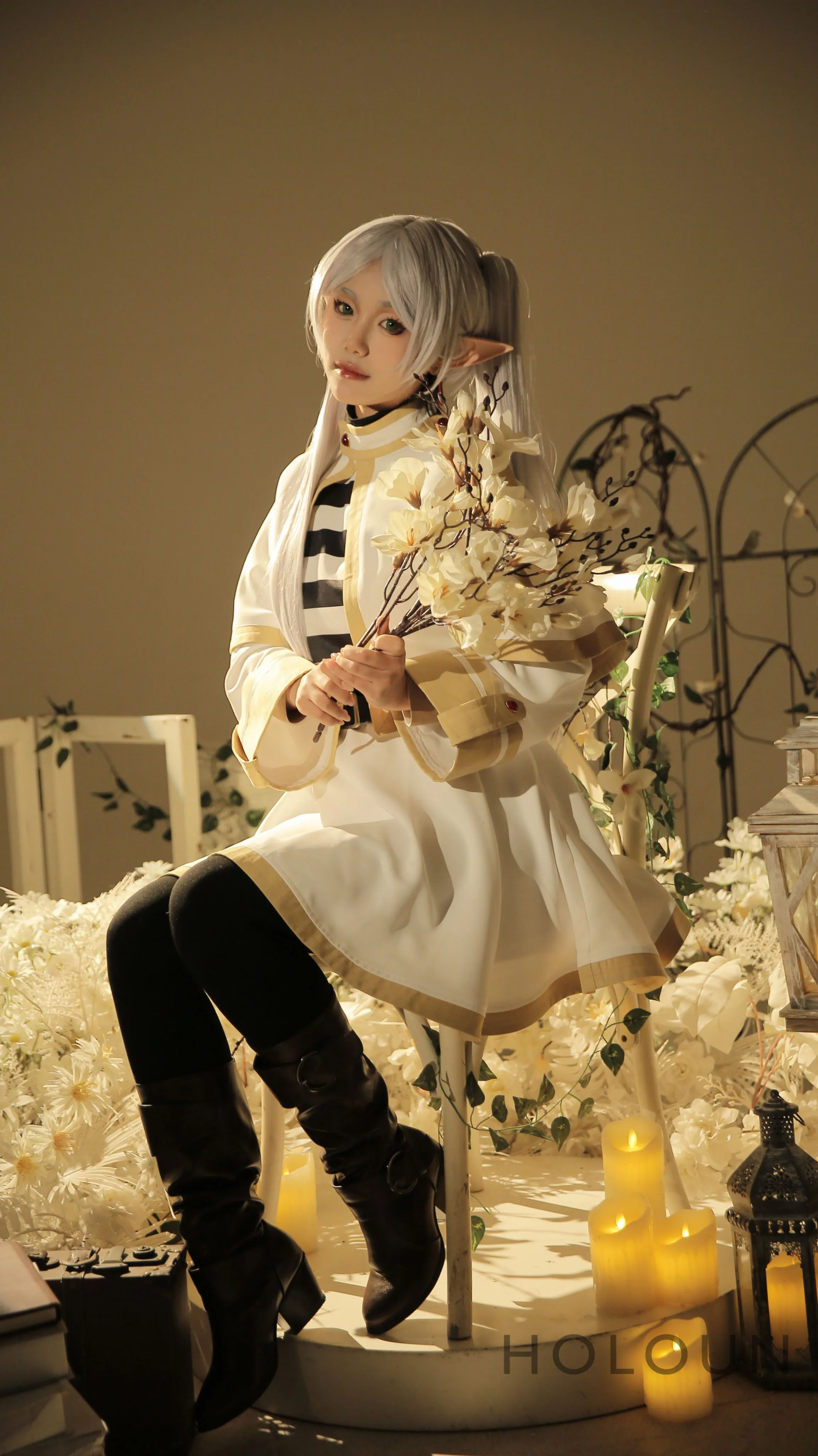 HOLOUN Frieren Beyond Journey's End Anime Frieren Cosplay Xale Manto Vestido Peruca Cinza Rabo de Cavalo Rosa Net Natal