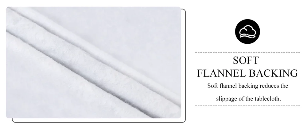 Nossas toalhas de mesa são uma combinação de vinil e parte traseira de flanela macia, reutilizáveis e protegem sua mesa contra arranhões, calor, desgaste diário