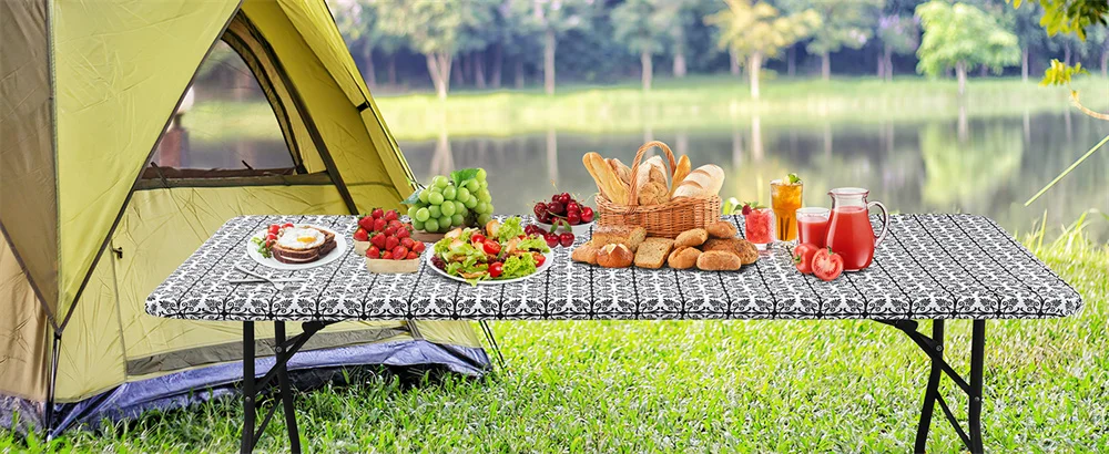 Toalha de mesa retangular de vinil Homaxy, toalha de mesa elástica ajustada, capas de mesa de plástico à prova d'água, mesas dobráveis, piquenique, acampamento ao ar livre