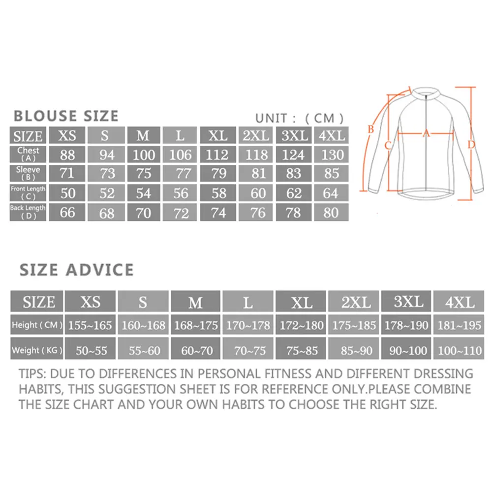 Tamanho: S, M, L, XL, 2XL, 3XL, 4XL (observe que a tabela de tamanhos desta jaqueta está mostrando o tamanho asiático, para escolher o tamanho consulte a sugestão de tamanho abaixo.)
