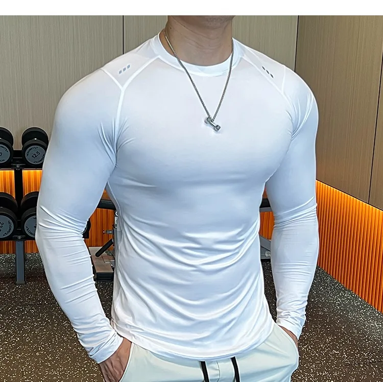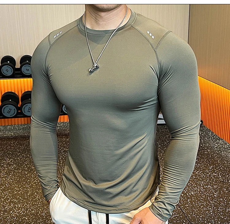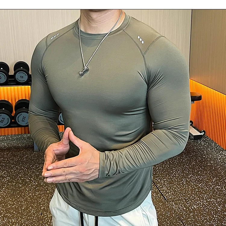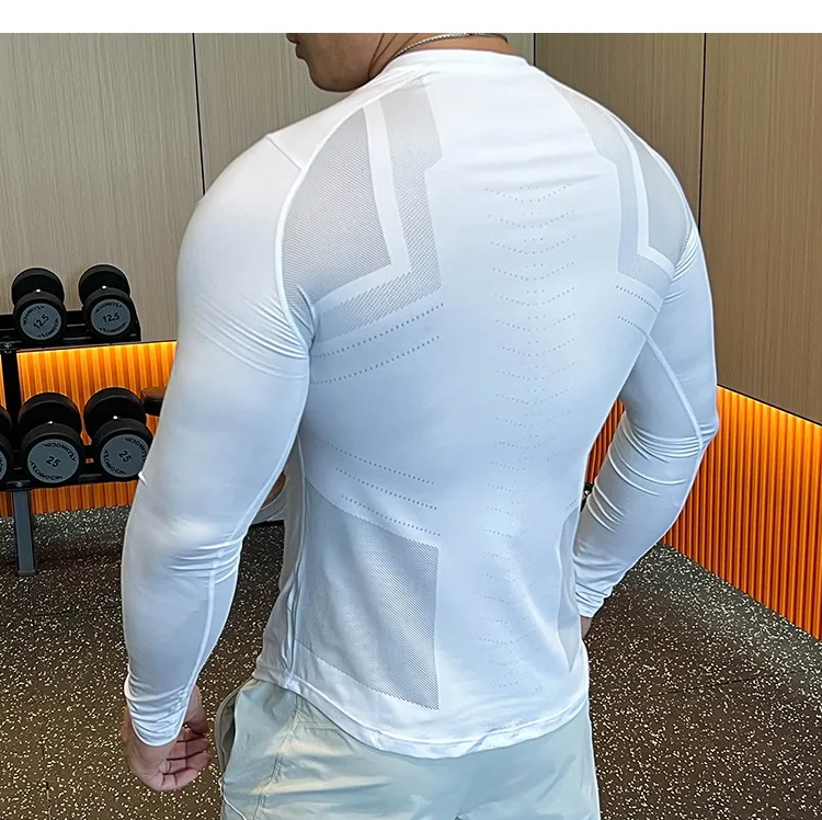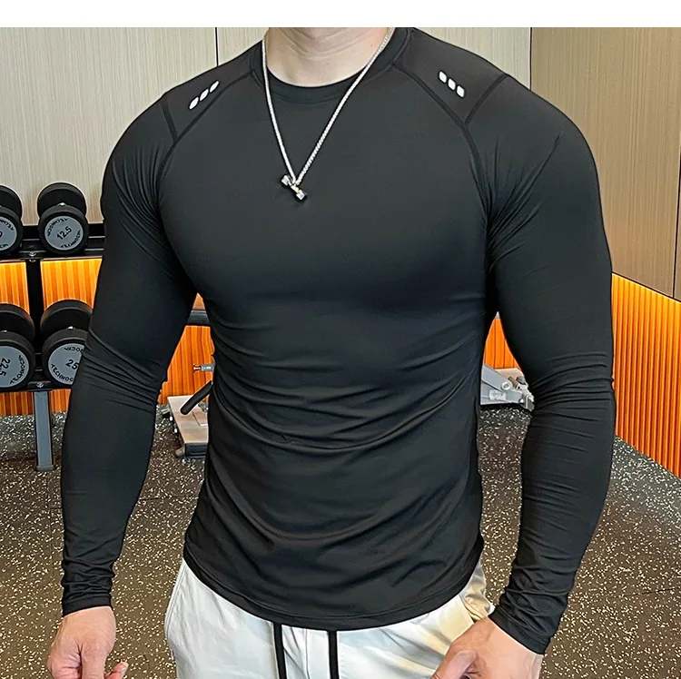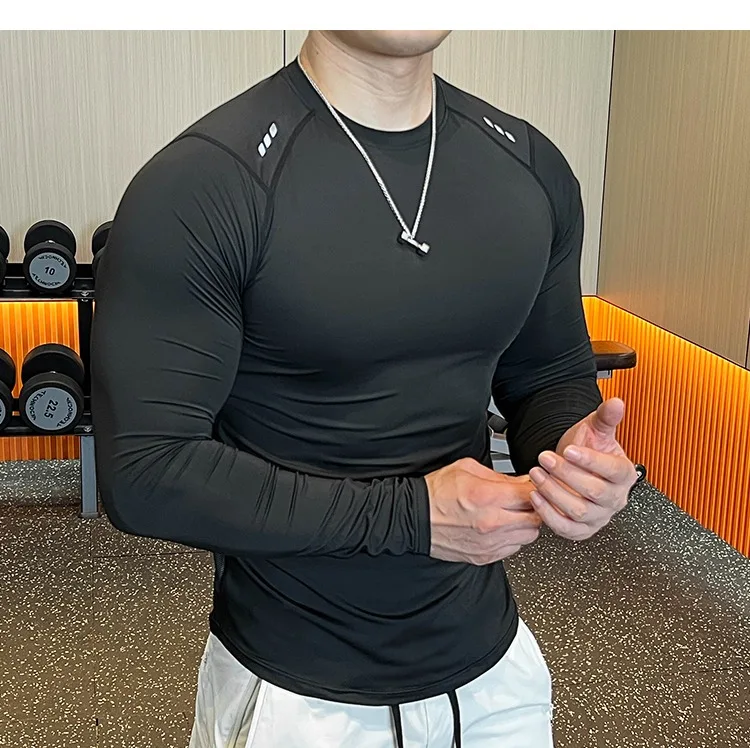 - > Homens compressão correndo camiseta de fitness apertado manga longa camisas esportivas treinamento jogging topos ajuste seco undershirt ginásio roupas esportivas