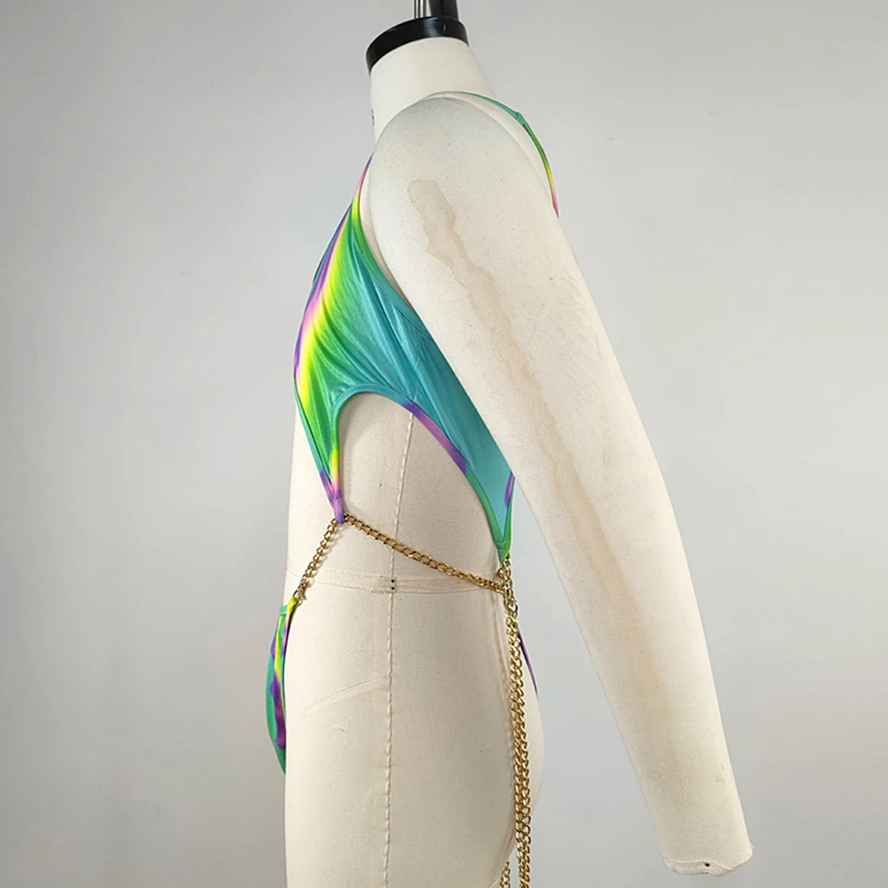 Homens Macacão Boate Colorido Impresso Cadeia T Em Forma Macacão Sexy Erótico Lingerie Fetiche Pijamas Bodysuit Siamese Underwear