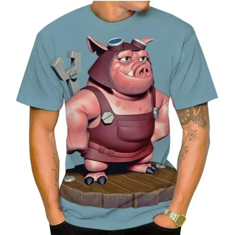 Impressão 3d porco gordo camiseta masculina engraçado animal gráfico t verão interesse moda manga curta topos rua crianças camisetas soltas