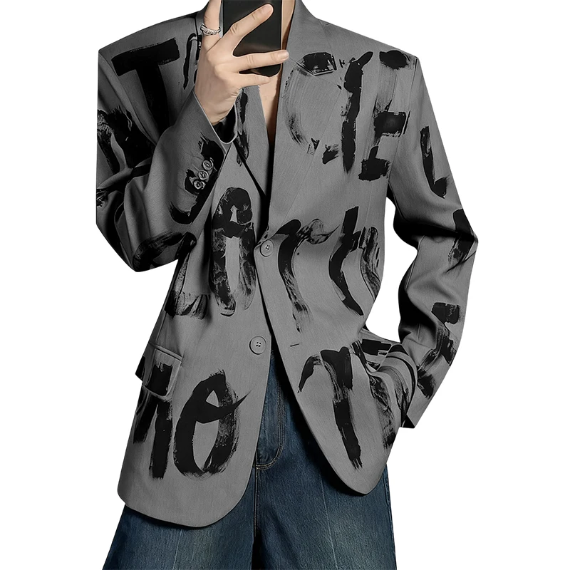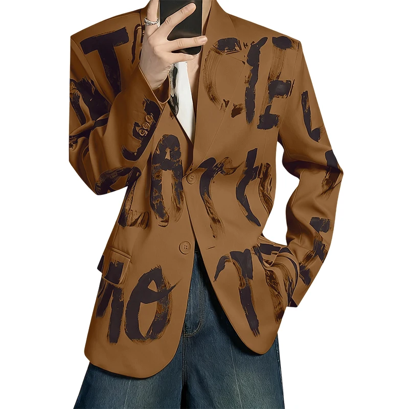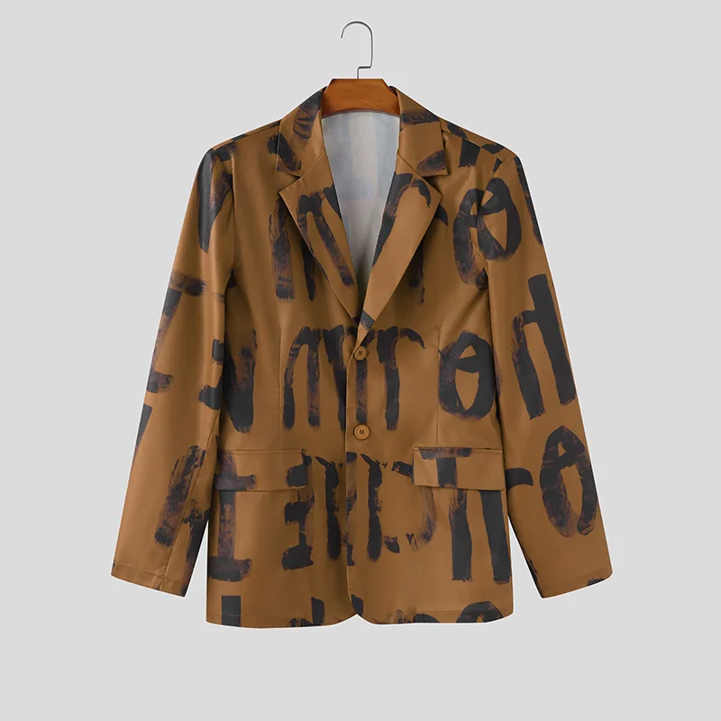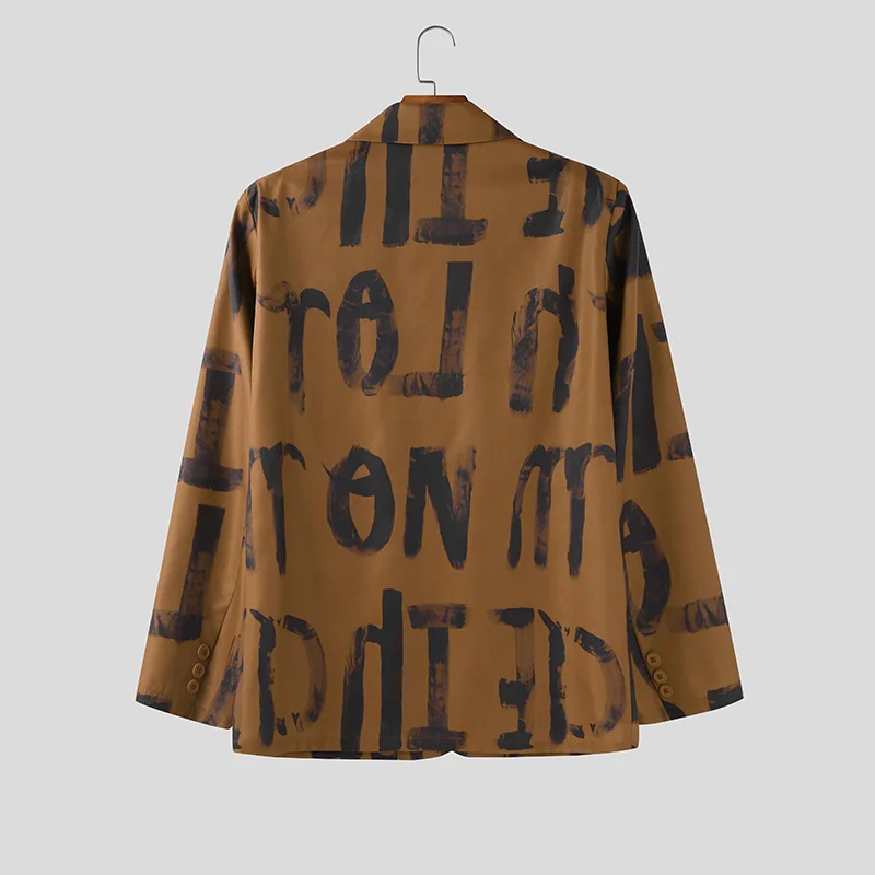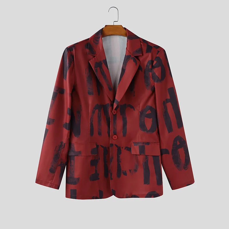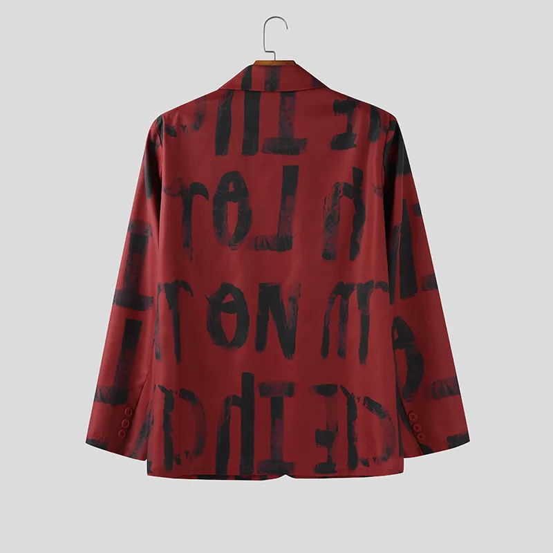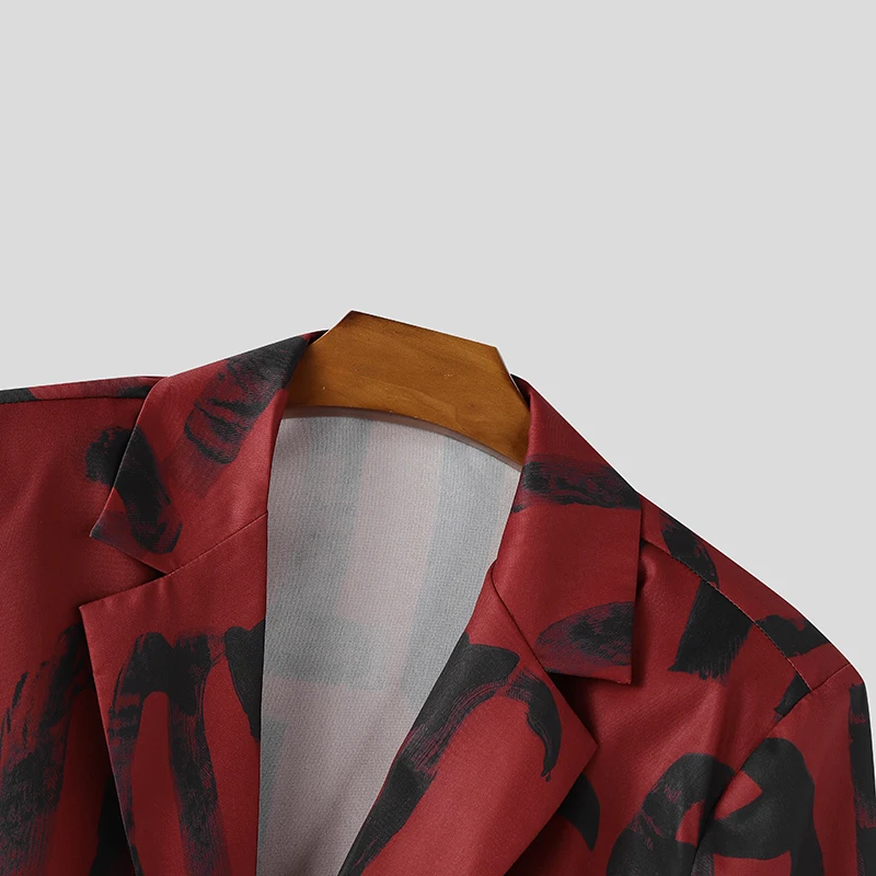 - > Incerun masculino blazer impressão lapela manga longa botão terno masculino streetwear solto elegante moda casual casacos finos masculino S-5XL 2025