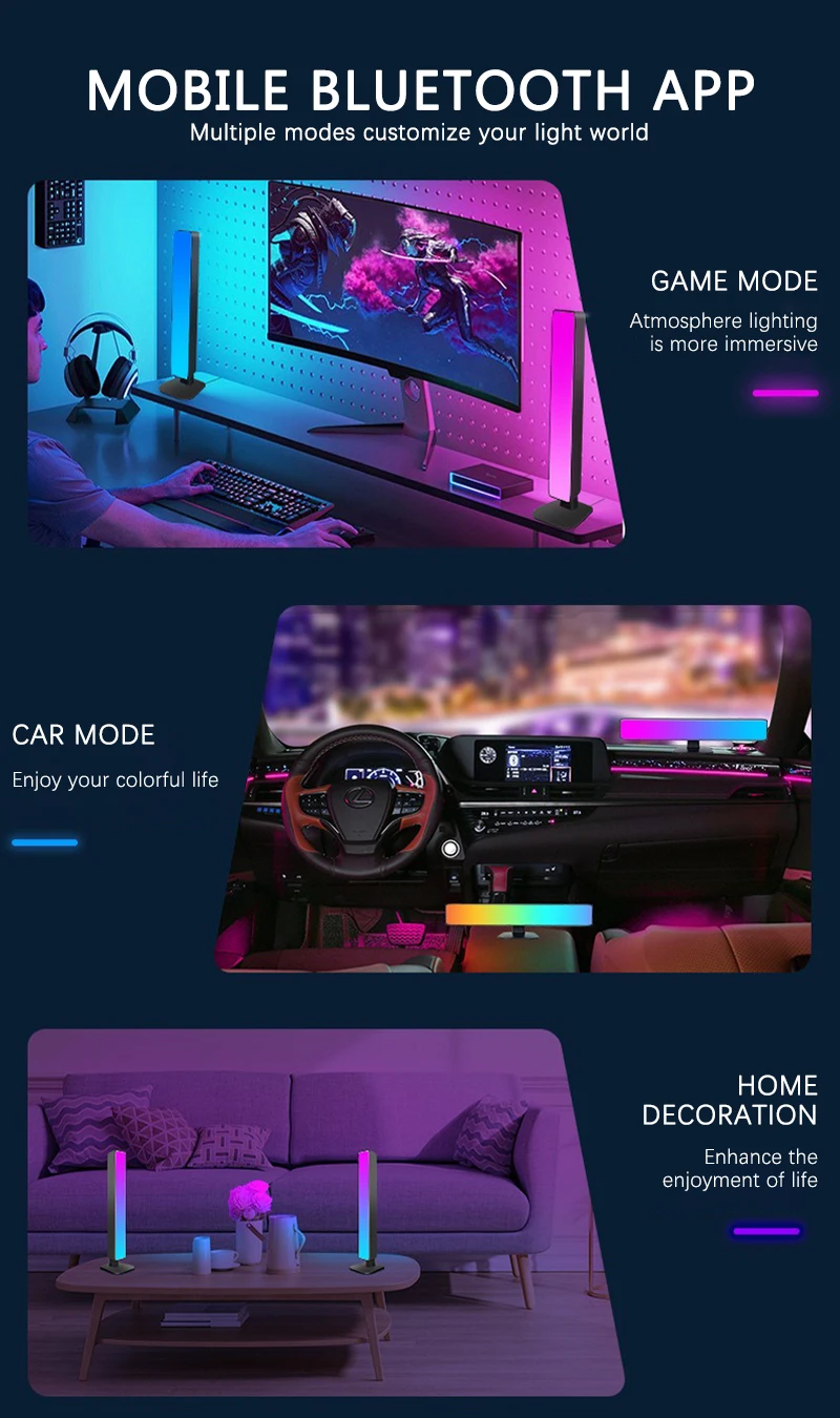 Inteligente tuya rgb gaming atmosfera luz wifi tv jogo computador desktop decoração lâmpada de mesa app controle remoto carro música ritmo luz