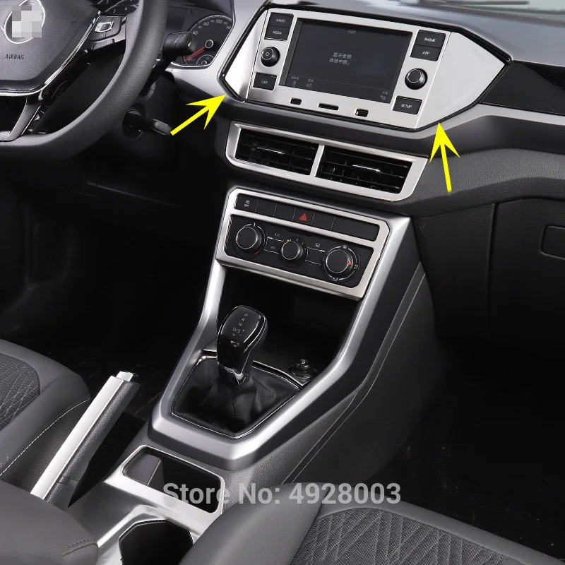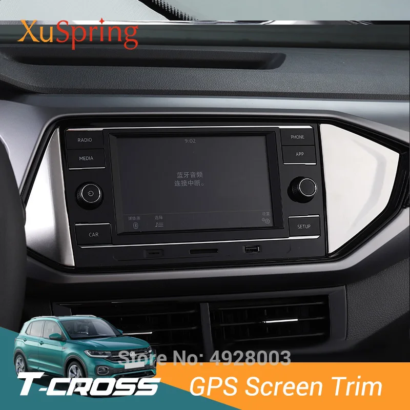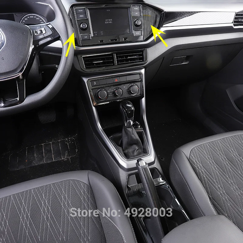 - > Interior do carro painel de tela gps guarnição lateral capa adesivos enfeite para vw t-cross 2019 2020 2021 2022 2023 2024 lhd