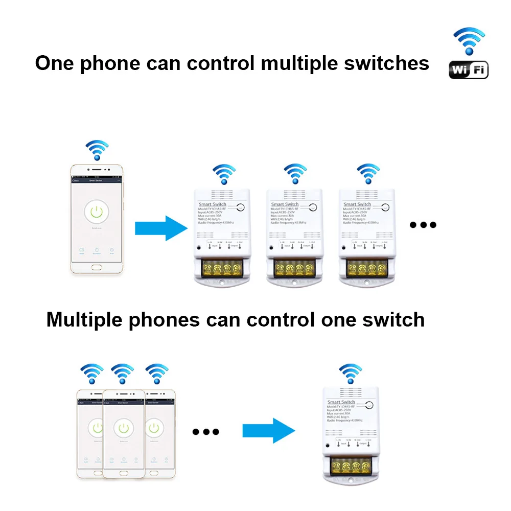 *Supports WiFi network. Supports numerous WiFi smart switches on one smart phone.