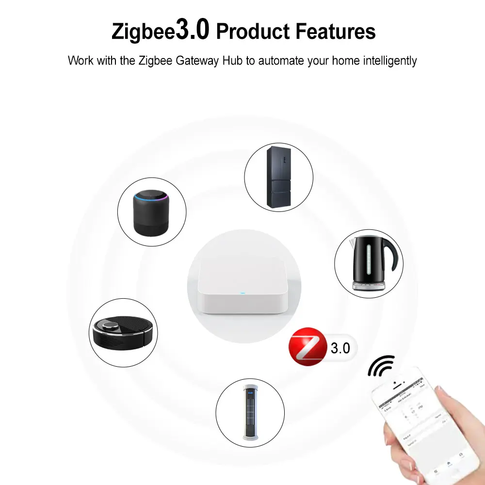 Combine with gateways and other zigbee products for intelligent linkage. For example, with zigbee door magnets, lights are switched on immediately after opening the door. zigbee gateway + zigbee smart switch + zigbee door magnets