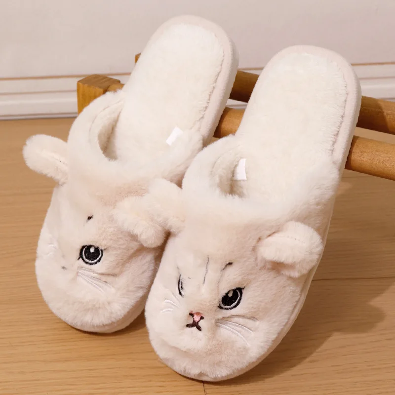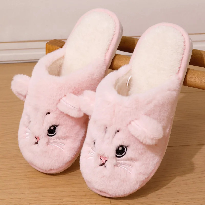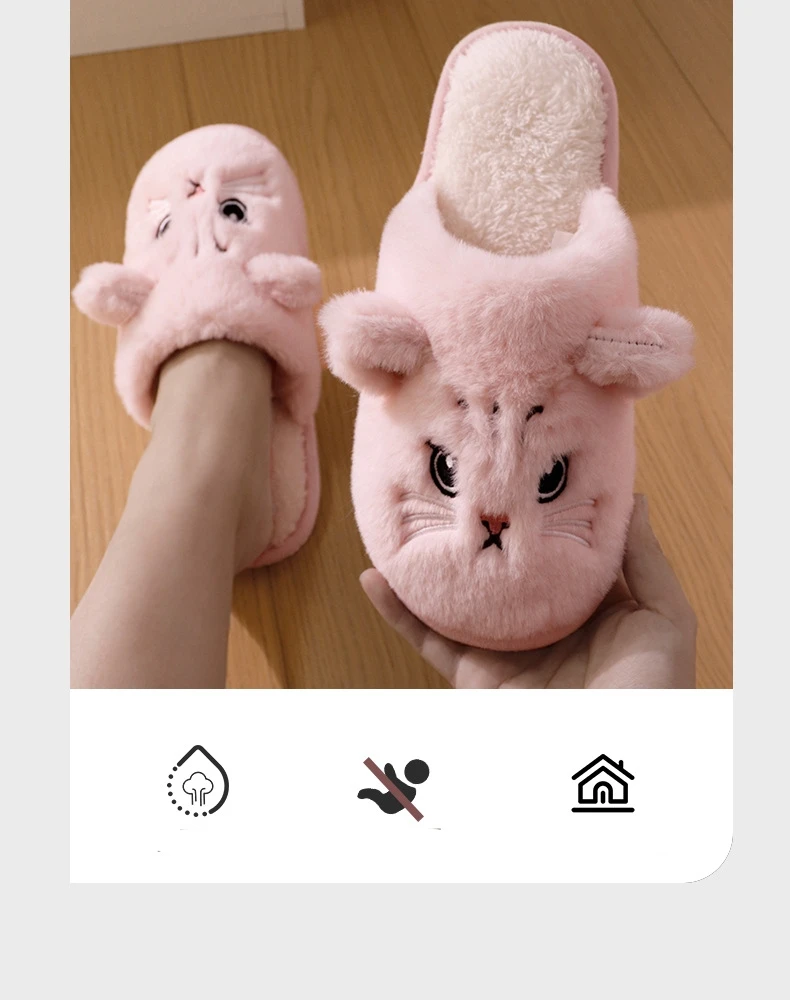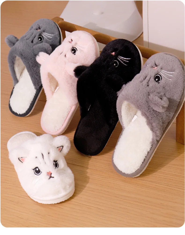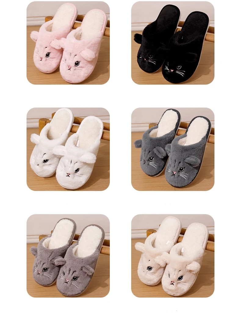 - > Inverno adorável gato chinelos de pelúcia para mulheres dedo do pé quente casa slides casal macio animal bordado sapatos masculinos sandálias de chão fofo