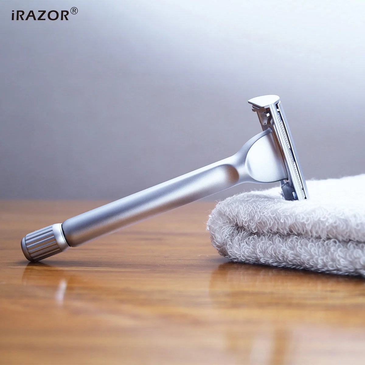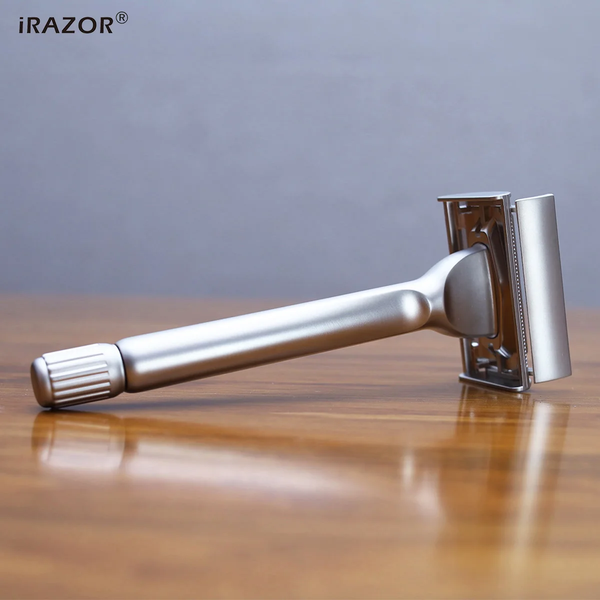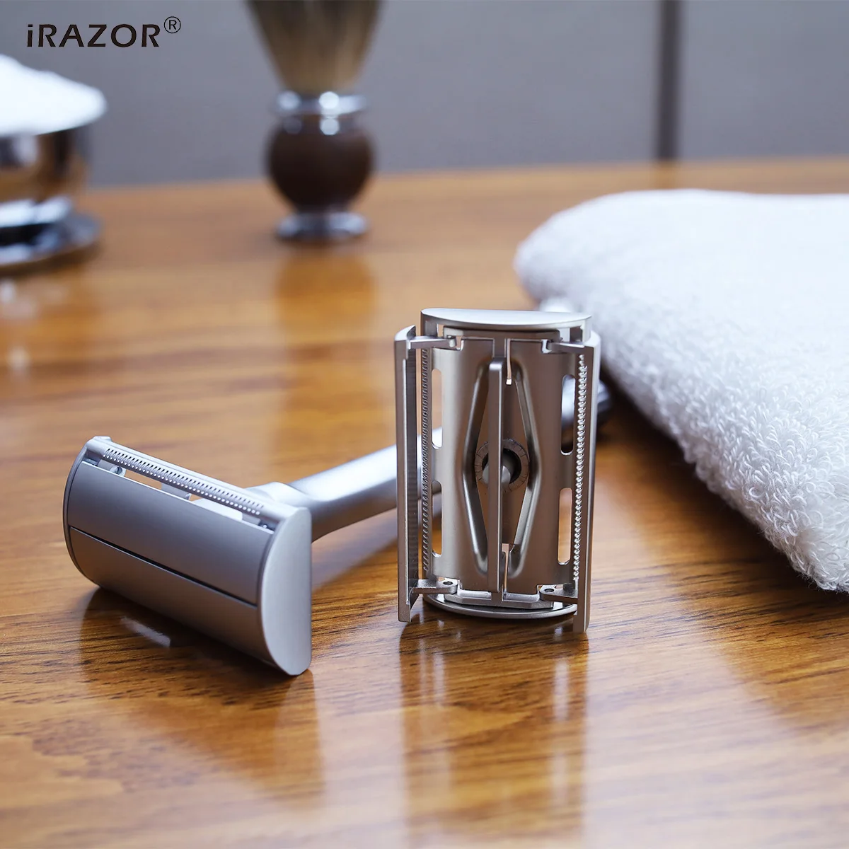 Irazor novo design de borboleta pesada, lâmina de segurança de borda dupla com 10 peças de recargas de lâmina originais para homens, conjunto de presente de aliciamento reutilizável