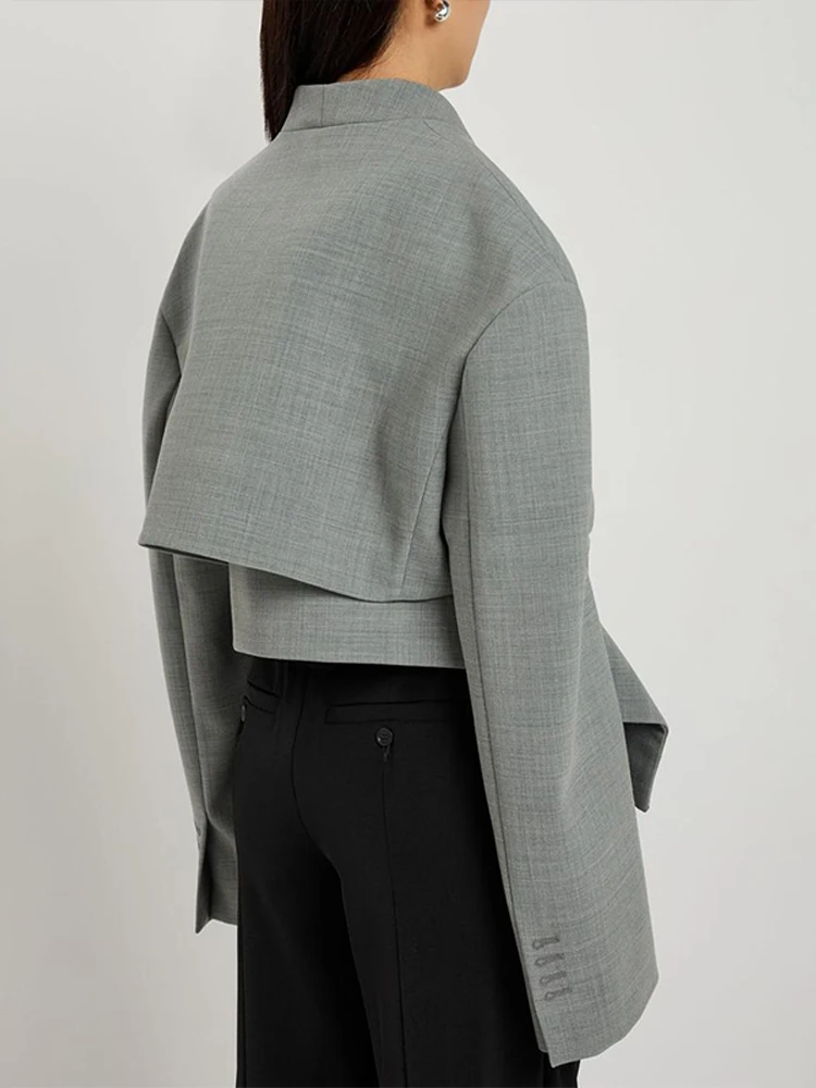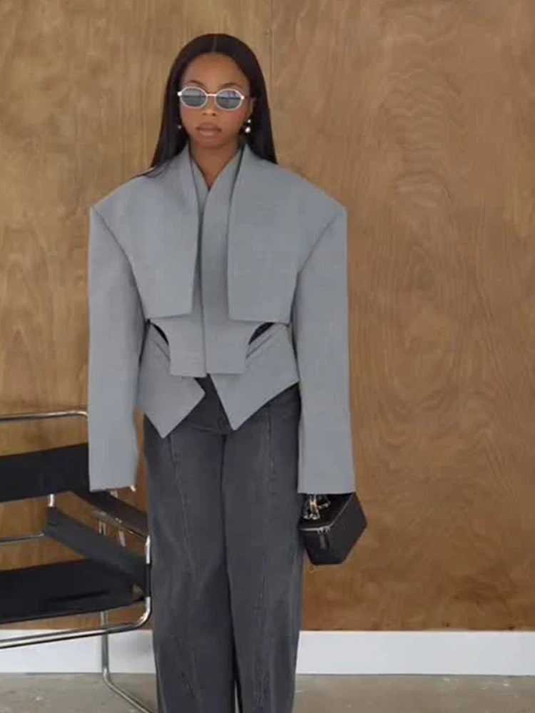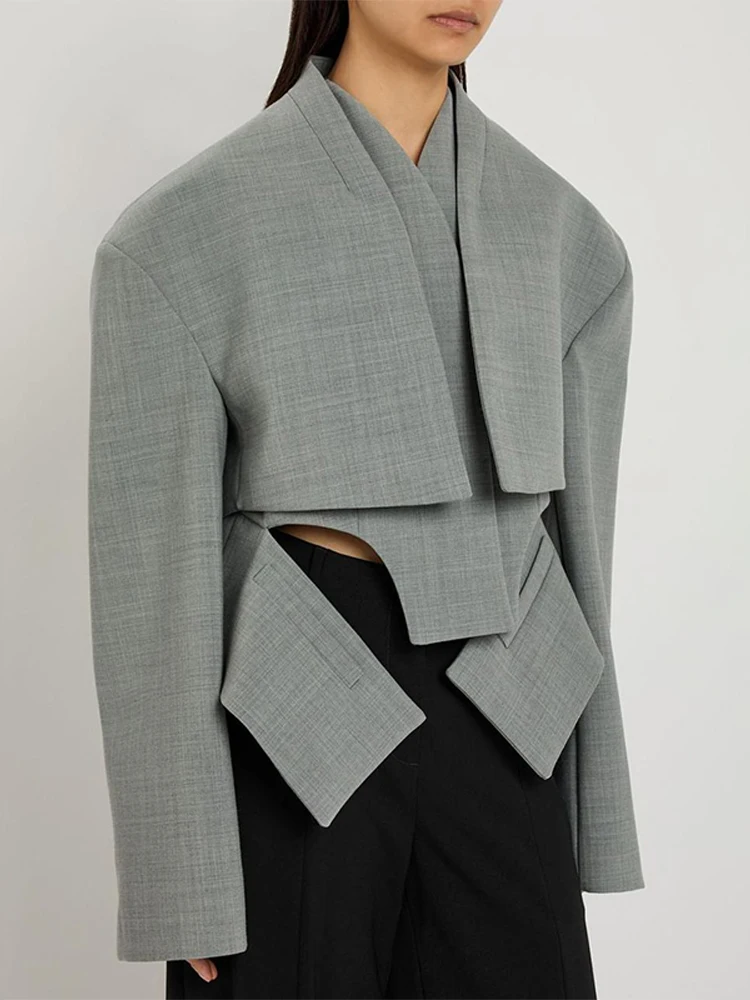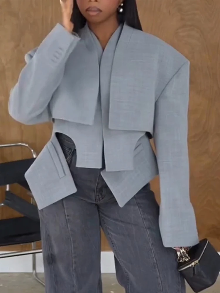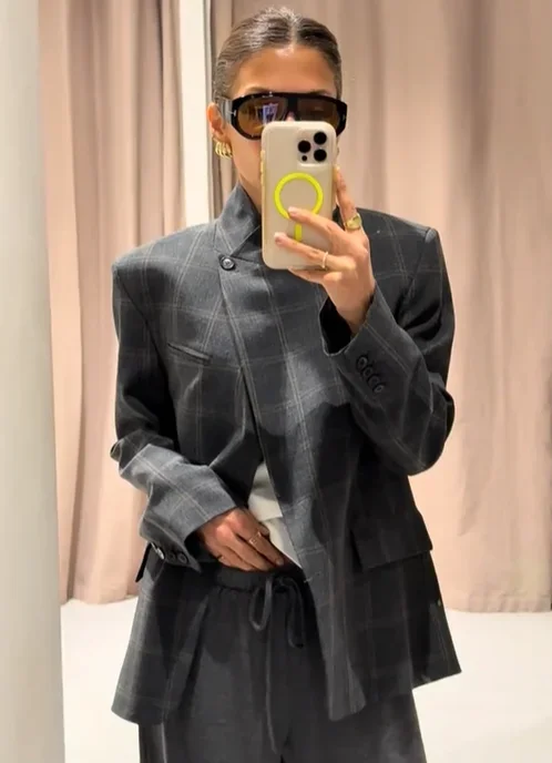 - > Irregular xadrez blazer jaqueta casual gola manga cheia divisão solta feminina quente curto jaquetas moda diário comute outwear