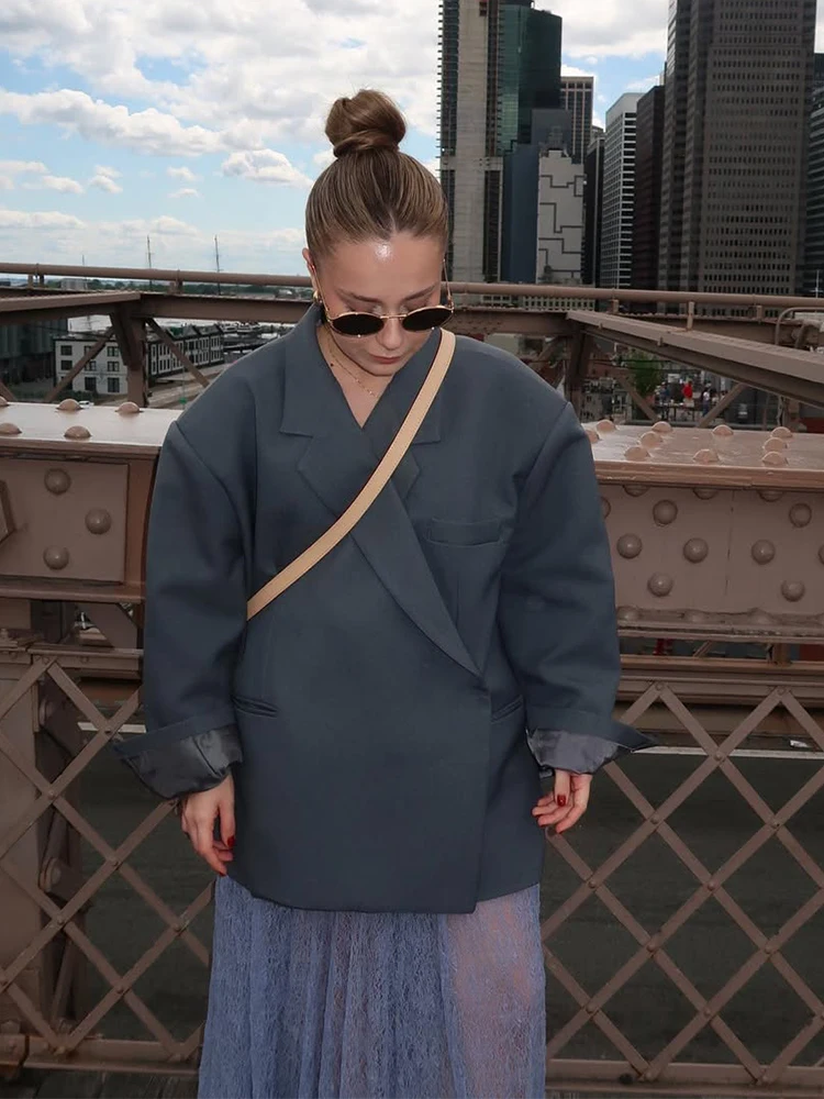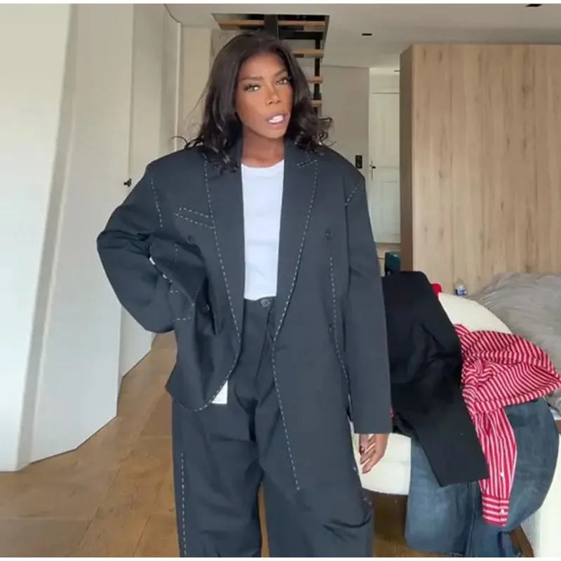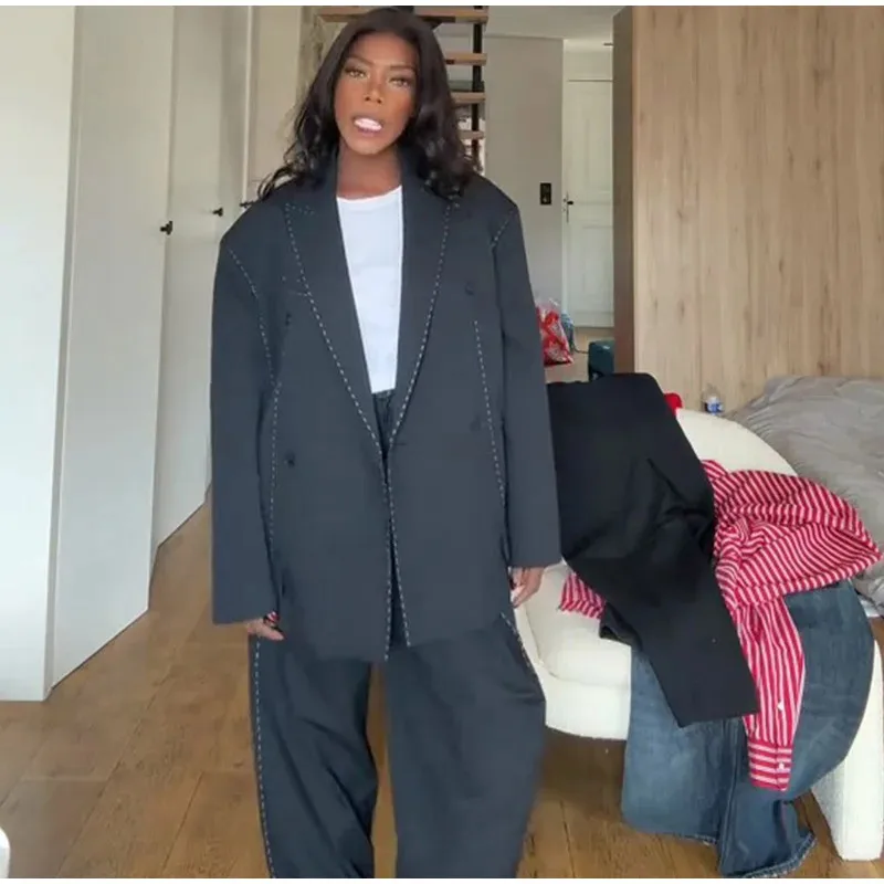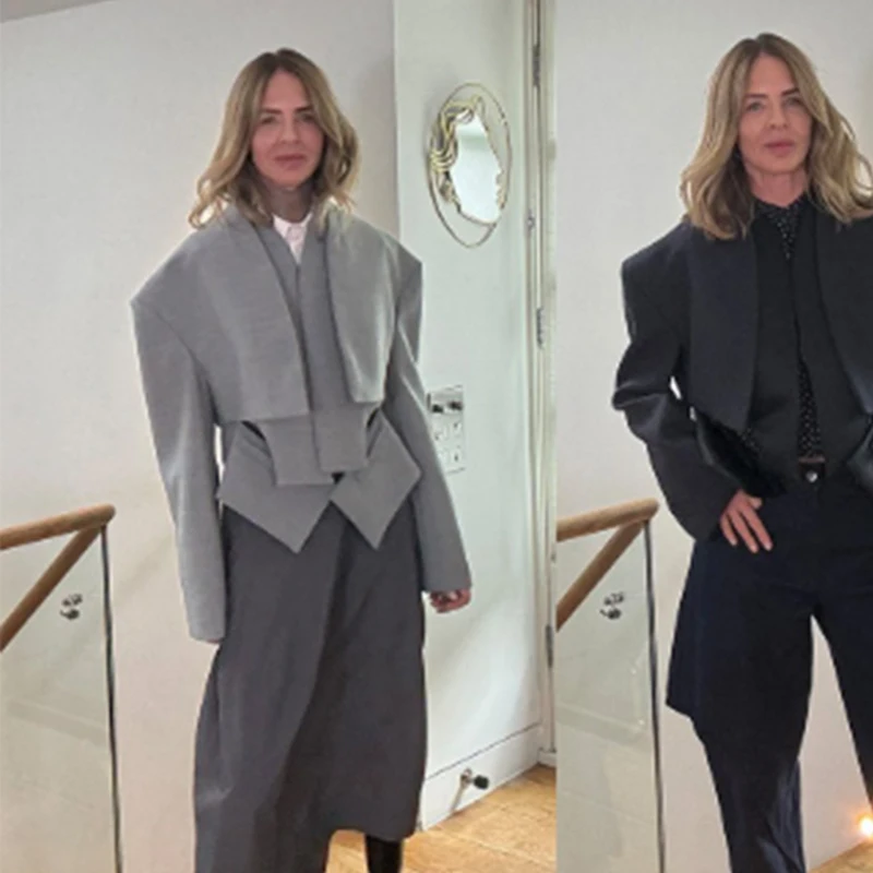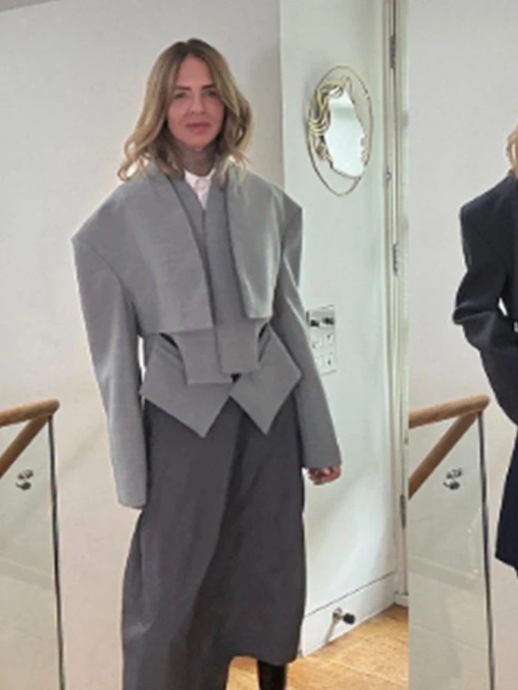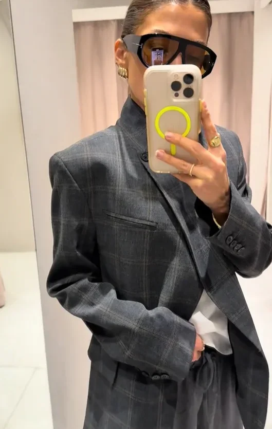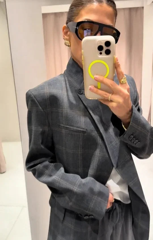 Irregular xadrez blazer jaqueta casual gola manga cheia divisão solta feminina quente curto jaquetas moda diário comute outwear