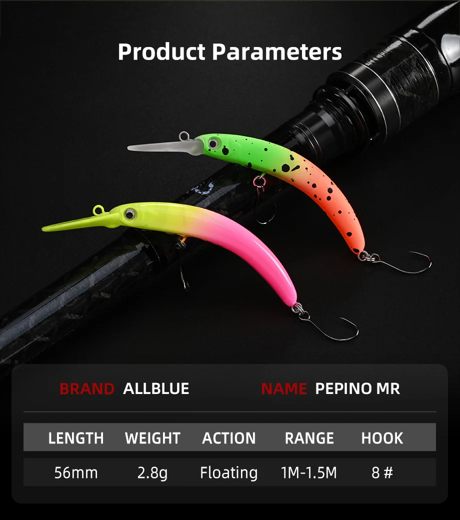 Isca Artificial Flutuante ALLBLUE PEPINO MR 56mm 2.8g, Crankbait Wobbler para Pesca em Água Doce, Isca Dura Artificial para Truta