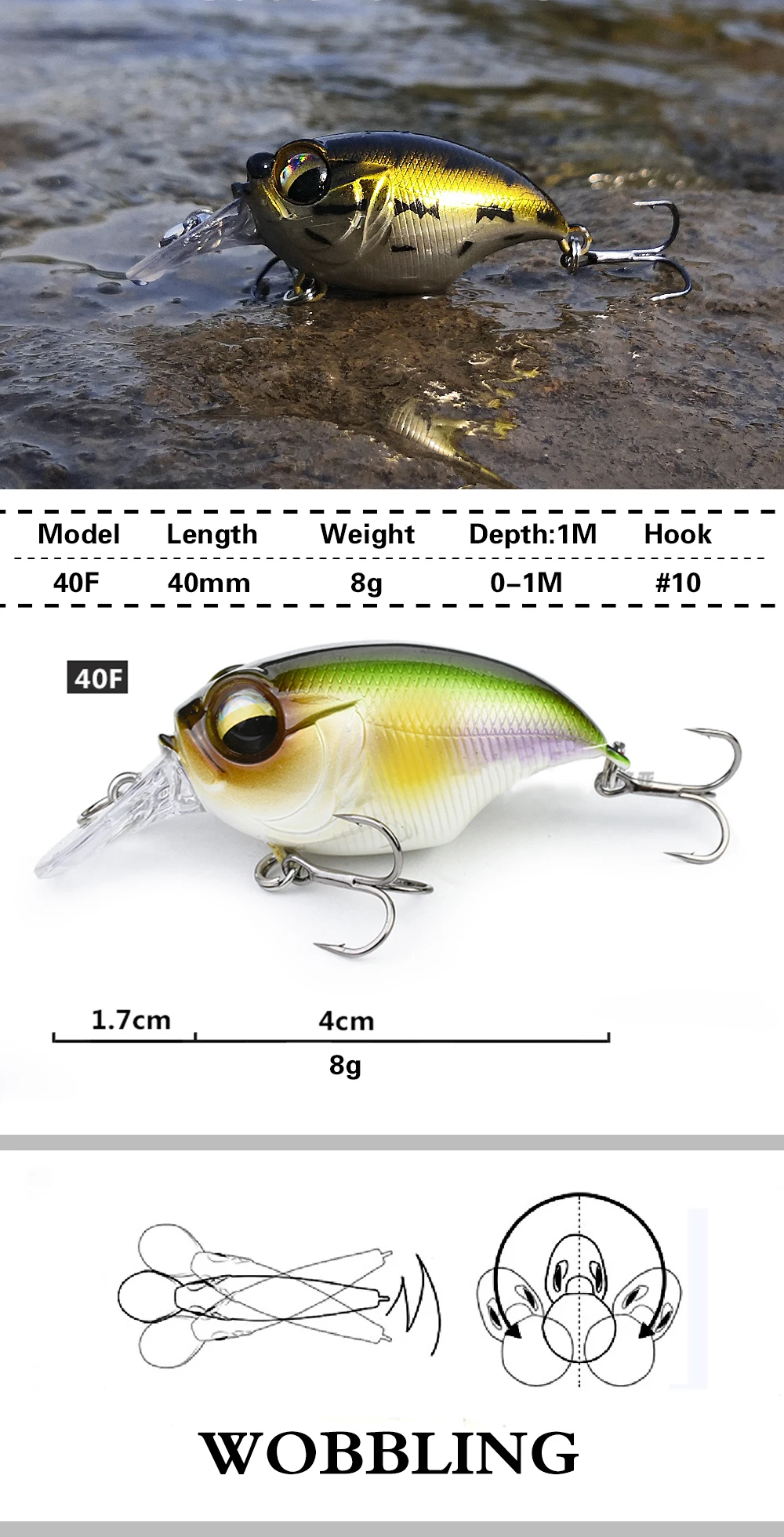 Isca de pesca flutuante, pesca de peixinho com manivela srx 40mm8g