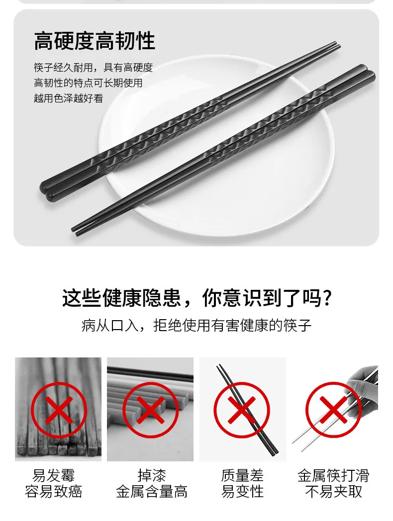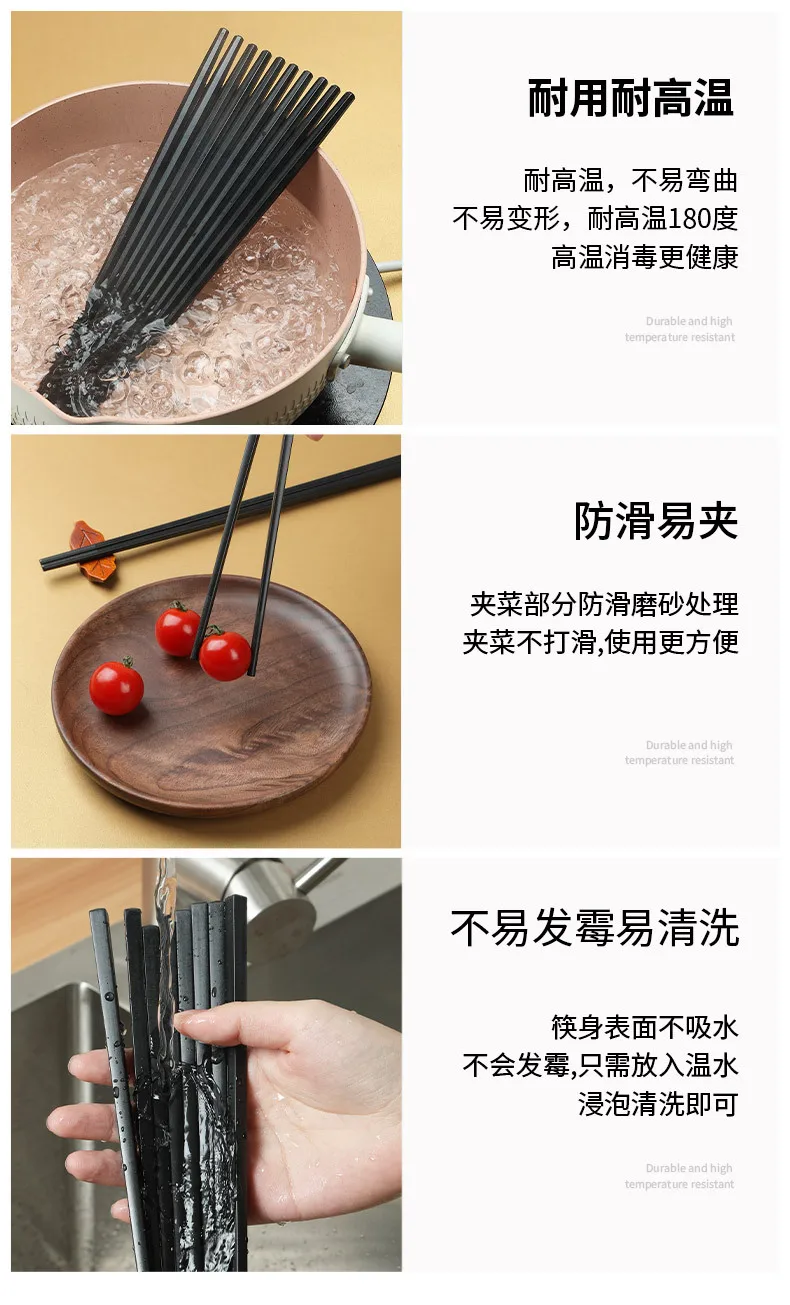 Japão sushi pauzinhos conjunto 2/10 pps liga pauzinhos apontados preto resistente a altas temperaturas talheres acessórios de cozinha