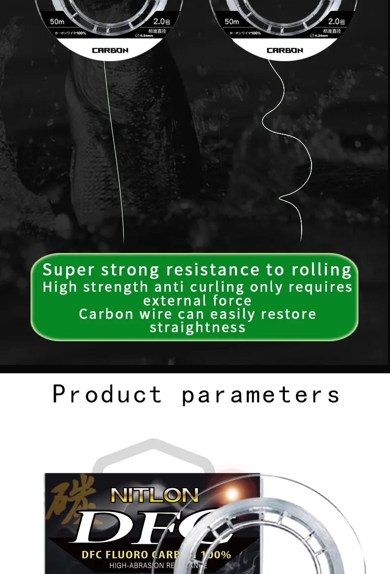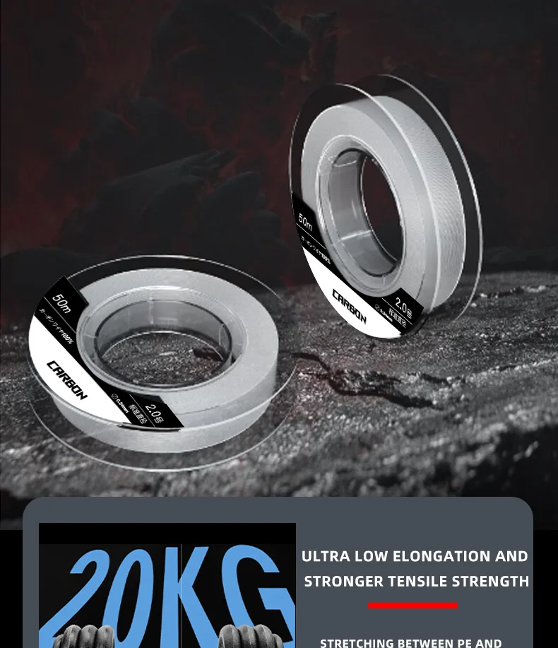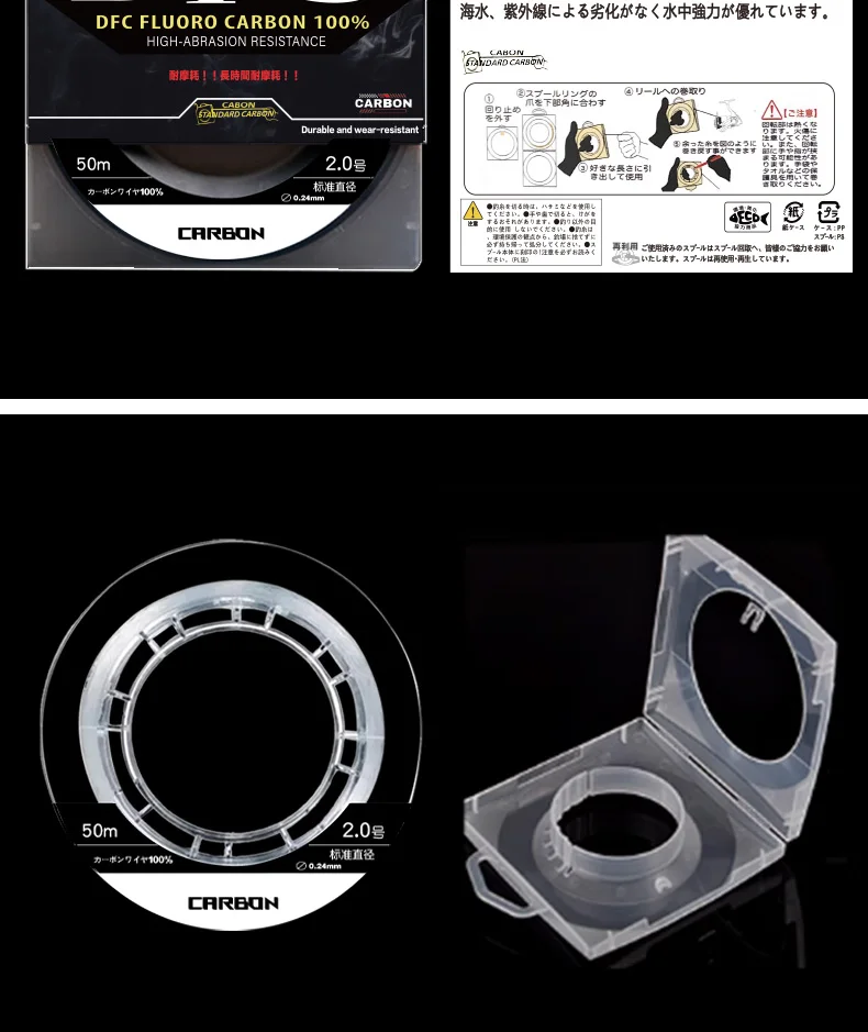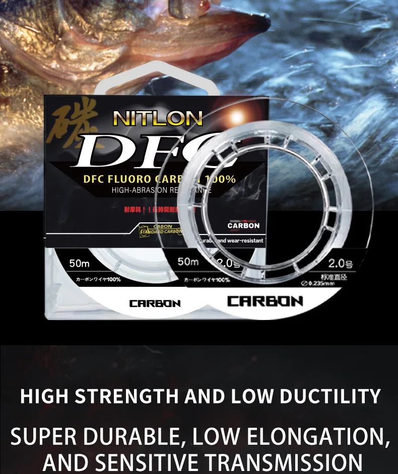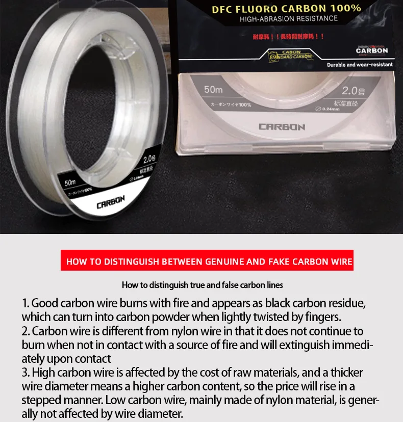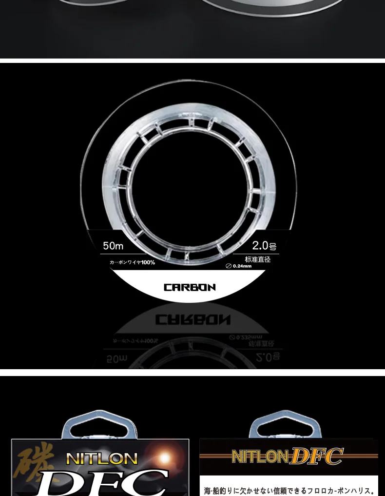 Japan ygk 100% Fluorocarbon Coating Fishing Line 50M Carbon Fiber Monofilament Leader Line Carp Fishing Sinking Line Accessories