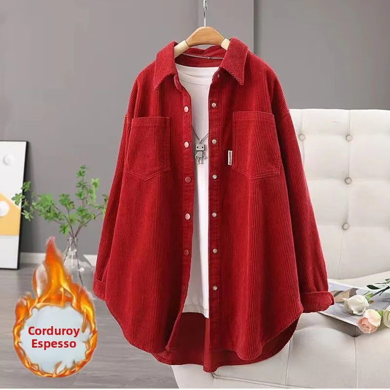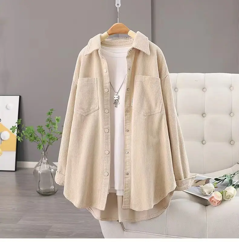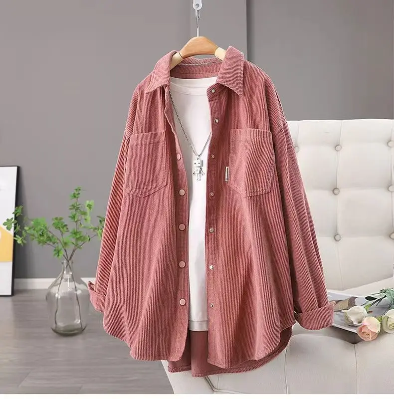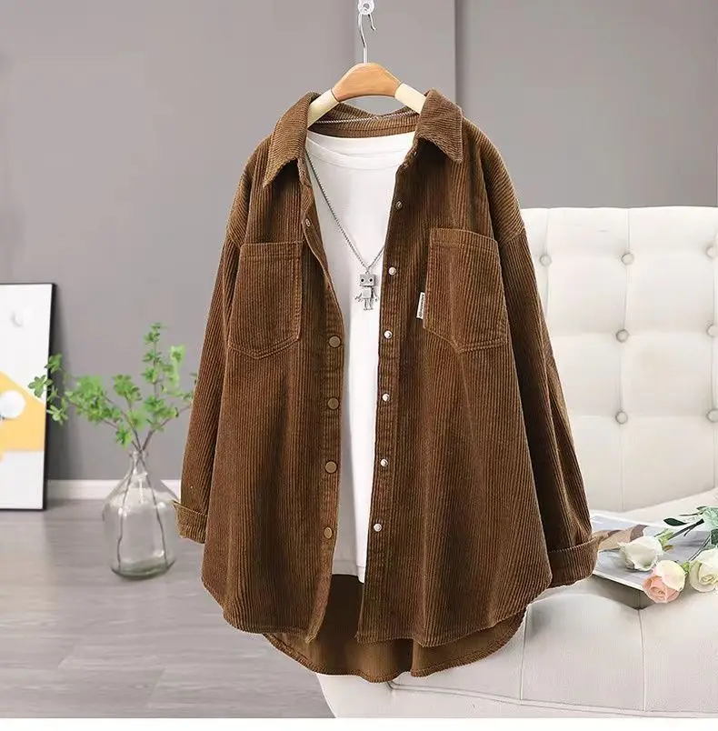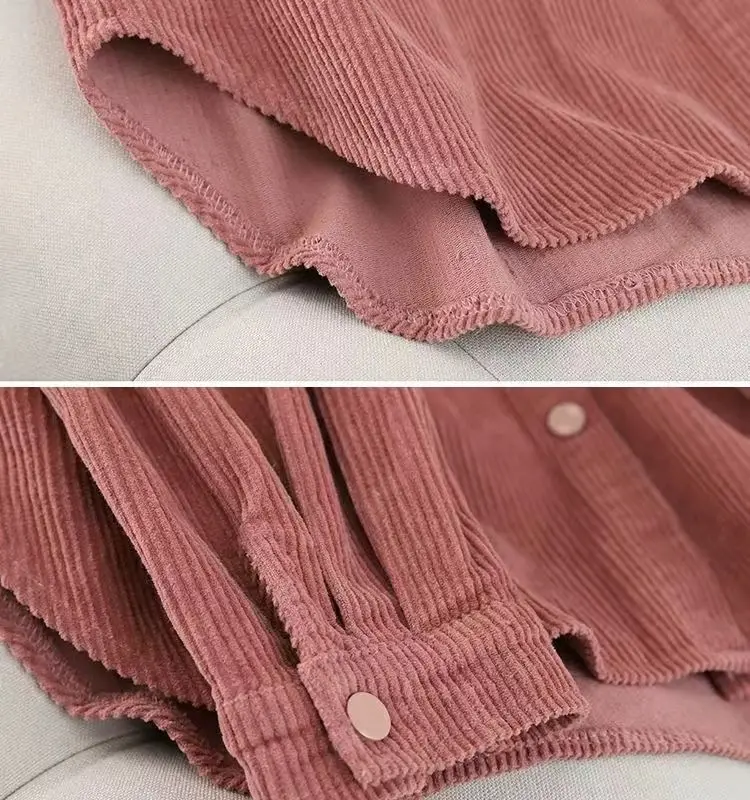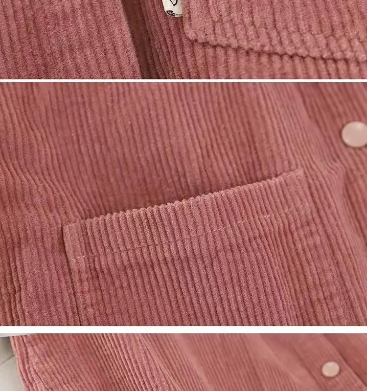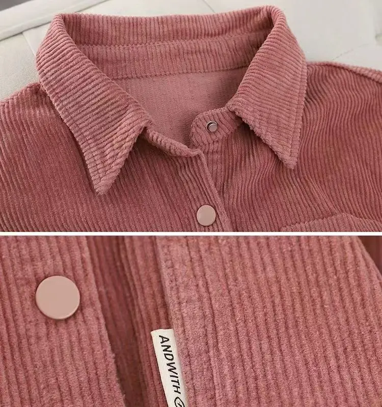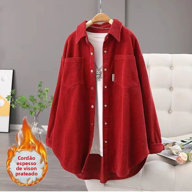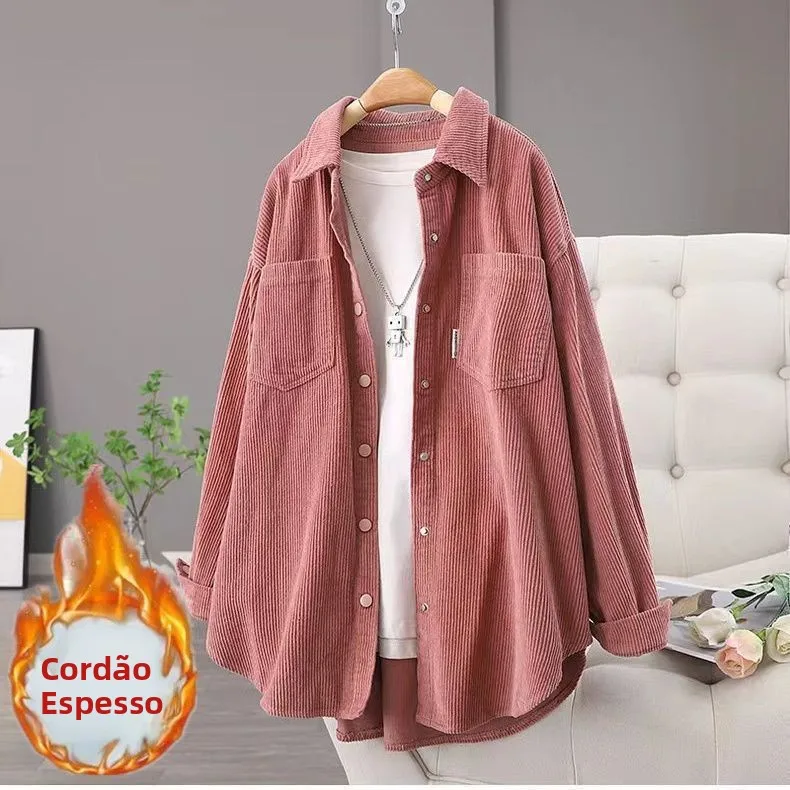 Jaqueta de Csa de Corduroy Estilo Coreano para Mulheres, Solta e de Crimento Médio, Cardigan F Quente com Manga ...