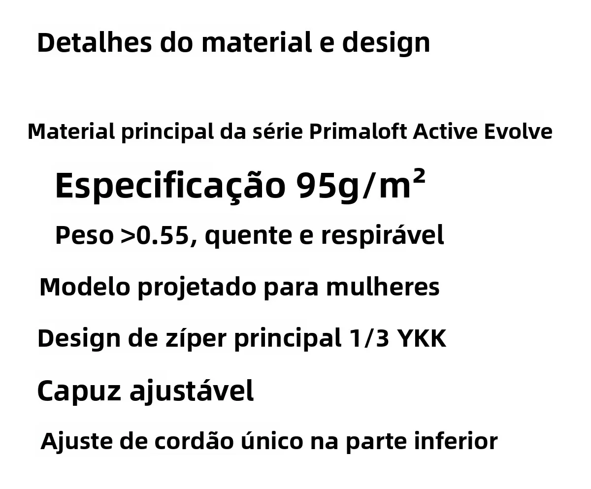 Este produto utiliza a tecnologia Primaloft Evolve, conhecida pela sua eficiência térmica e leveza, proporcionando conforto e calor durante atividades ao ar livre.