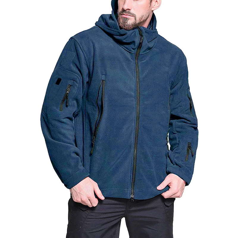 Jaqueta de lã tática de inverno masculina quente polar ao ar livre casaco com capuz multi-bolso casual completo zip esporte caminhadas jaqueta