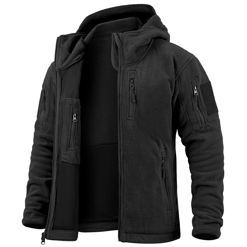 Jaqueta de lã tática masculina inverno quente zip completo militar hoodies multi-bolsos caminhadas caça casacos ao ar livre