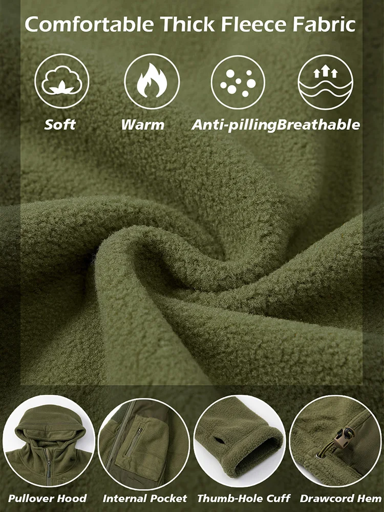 - > Jaqueta de lã tática masculina inverno quente zip completo militar hoodies multi-bolsos caminhadas caça casacos ao ar livre