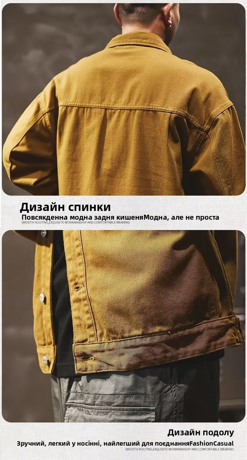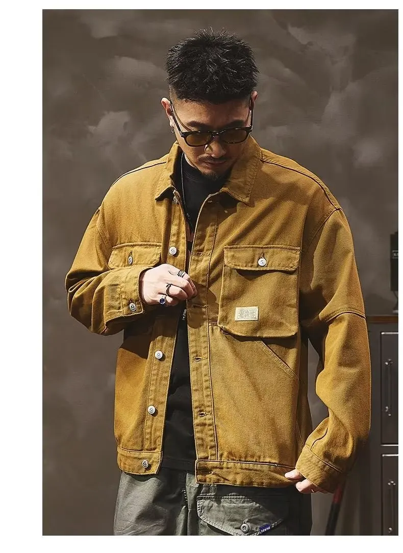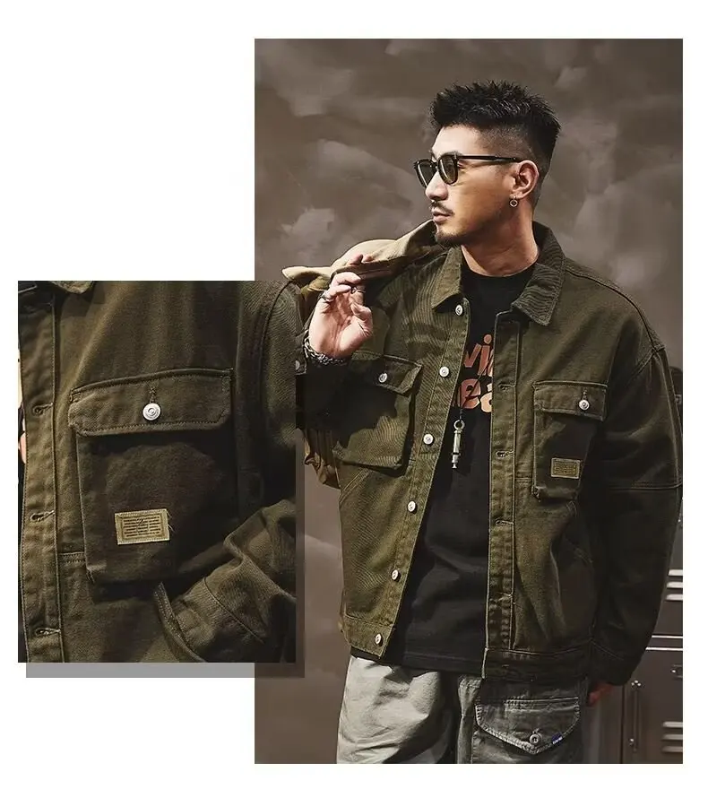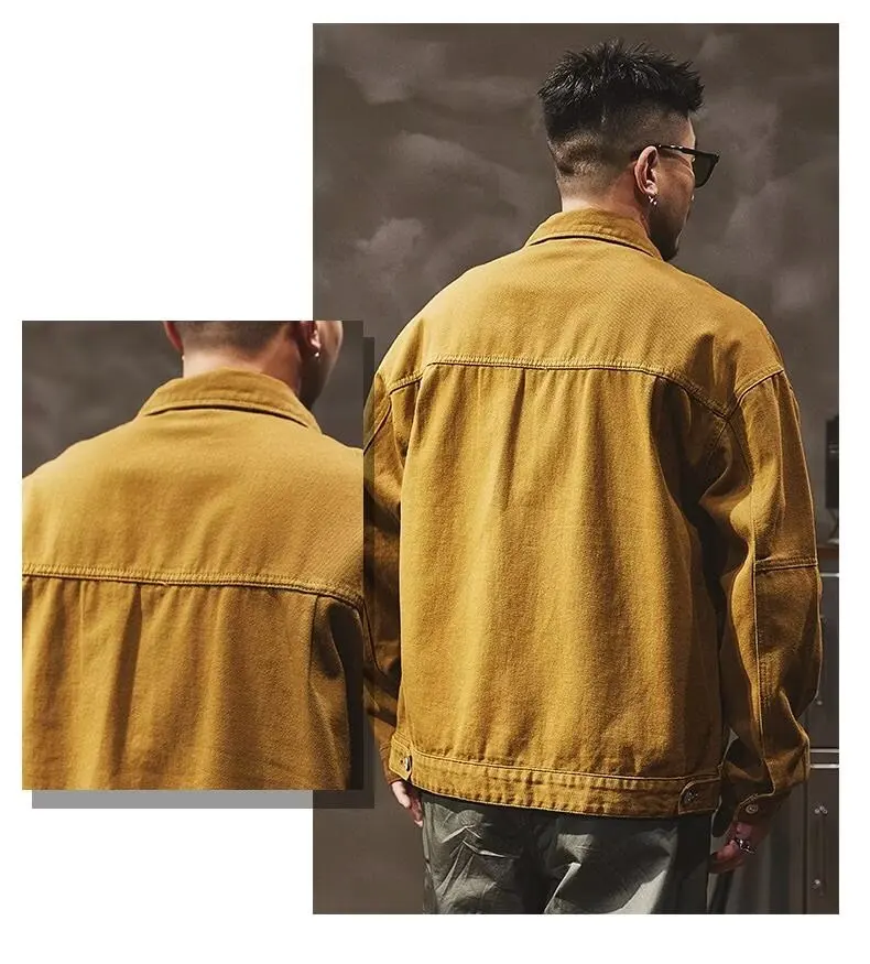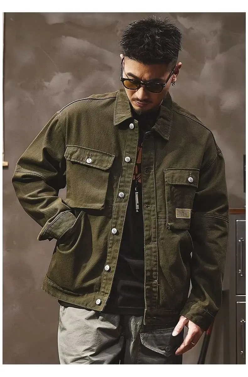 - > Jaqueta Jeans Masculina Retrô Americana Pesada, Nova Coleção Primavera Outono, Solta e Versátil, Estilo Robusto para Caça e T...