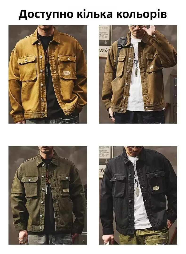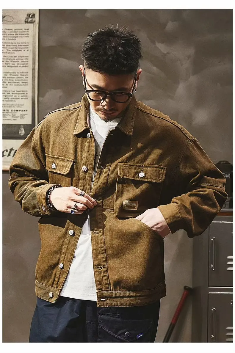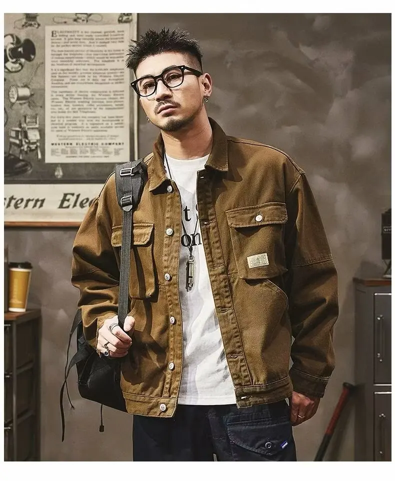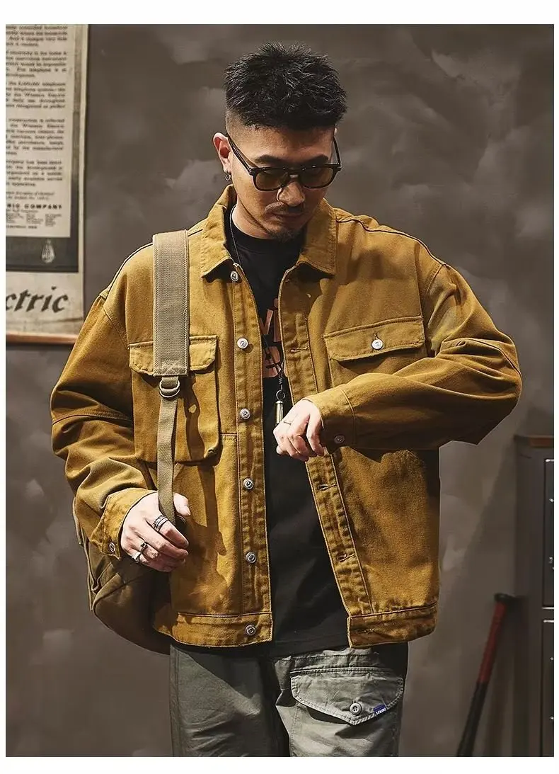 - > Jaqueta Jeans Masculina Retrô Americana Pesada, Nova Coleção Primavera Outono, Solta e Versátil, Estilo Robusto para Caça e T...