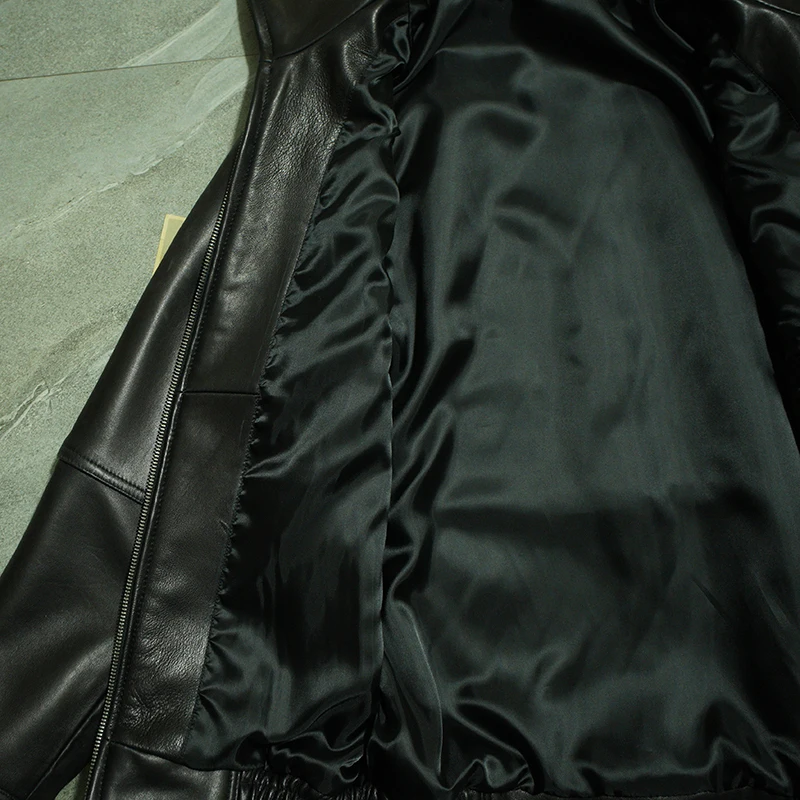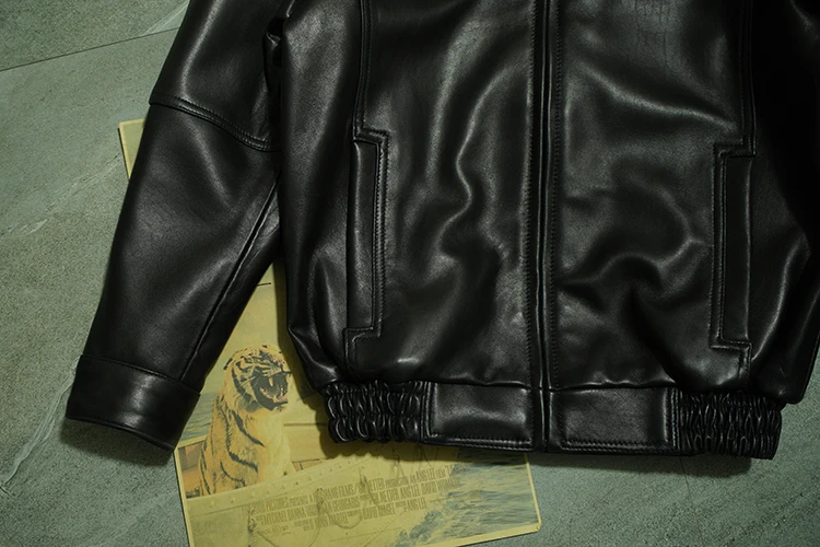 - > Jaqueta Masculina de Couro Genuíno A2 Pilot em Pele de Carneiro da Nova Zelândia, Estilo Curto, Casual Urbano e de Negócios, ...