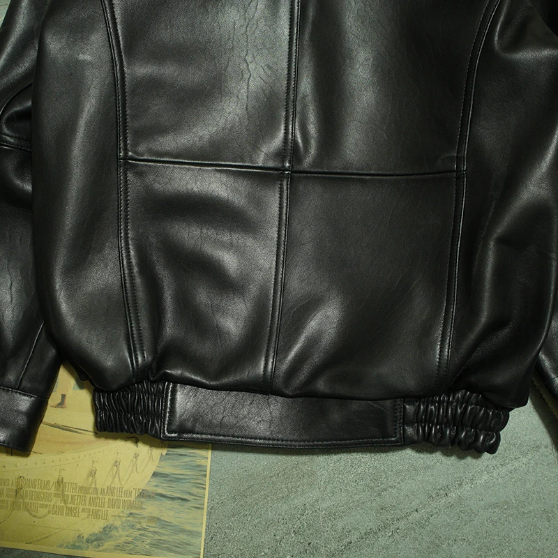 Jaqueta Masculina de Couro Genuíno A2 Pilot em Pele de Carneiro da Nova Zelândia, Estilo Curto, Casual Urbano e de Negócios, ...