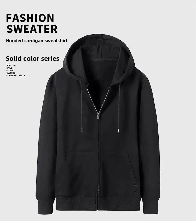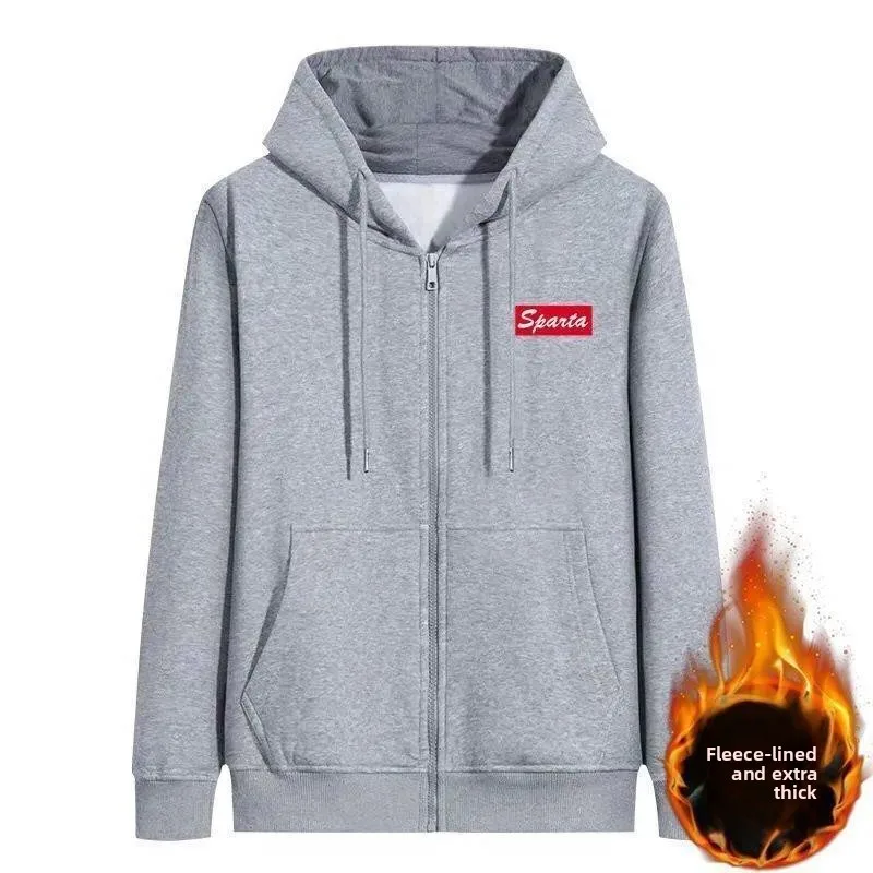 Jaqueta masculina forrada de lã com capuz outono inverno casual desportivo versátil fecho de zíper manga comprida fibra de poliéster agasalhos