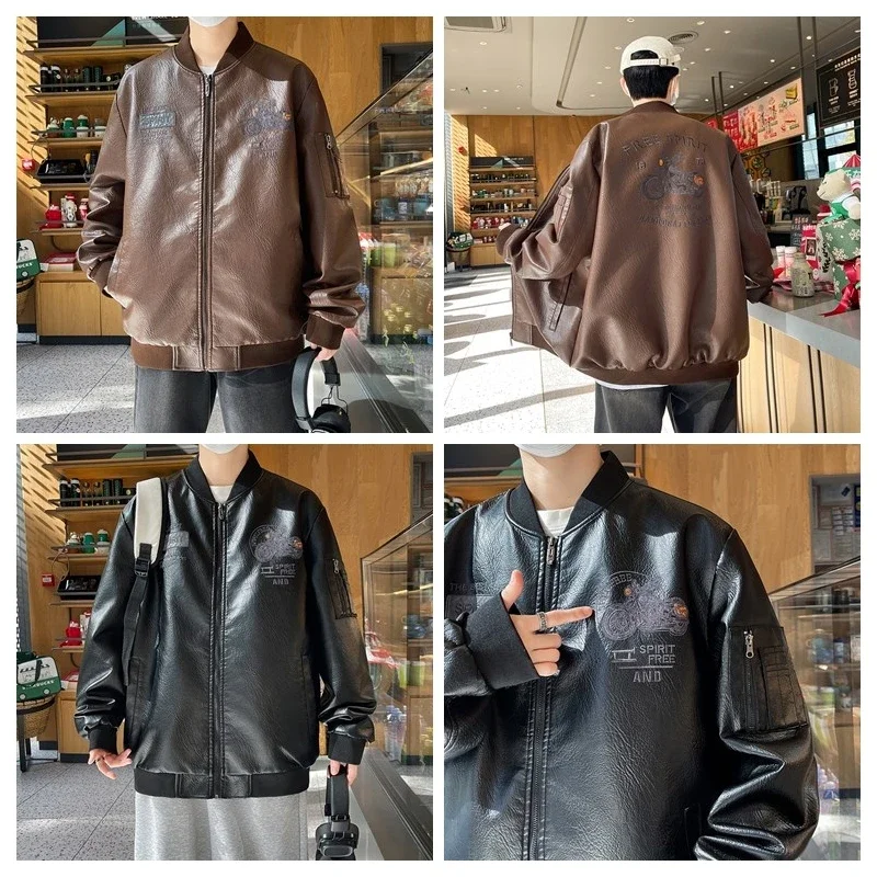 - > Jaqueta masculina plus size casual gola uniforme da motocicleta manga longa zip equitação jaqueta de motor homem outono streetwear casaco 8xl